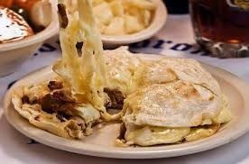 Sabrosa quesadilla en tortilla dre harina doblada con bistec y queso