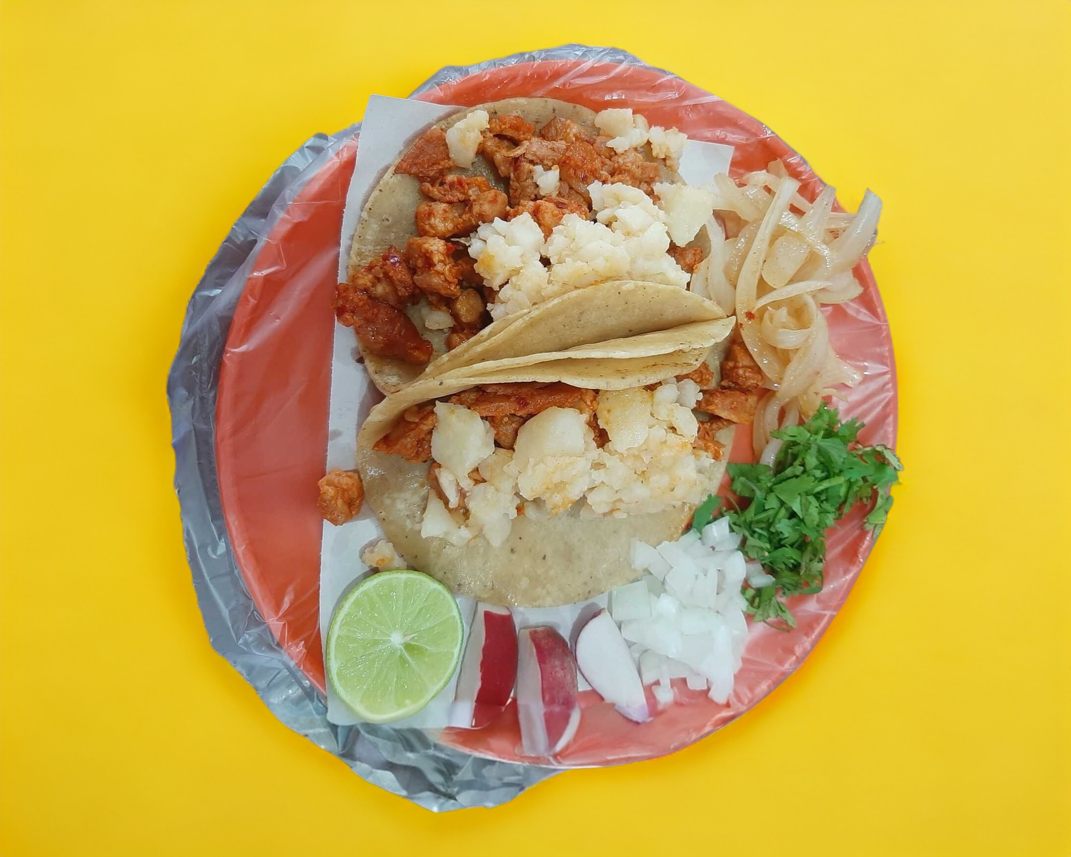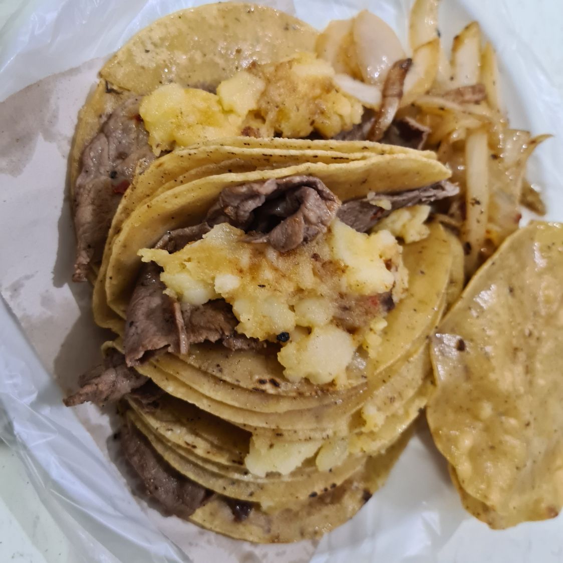 Rico taco de bistec con papa, elaborado con ingredientes de alta calidad y del dia