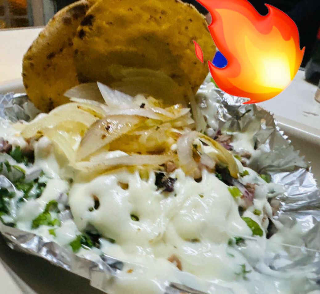 Preparada con tortilla de harina, carne a elegir, delicioso queso asadero derretido 🤤, cebolla y cilantro. Acompañada de cebolla guisada, salsa verde y salsa roja.
