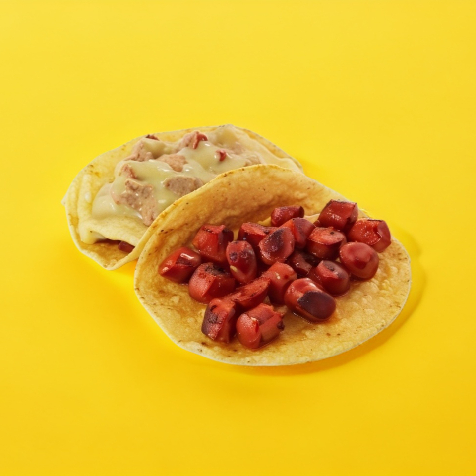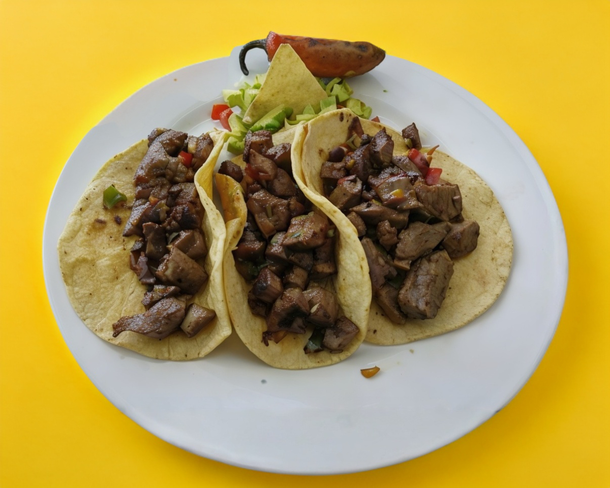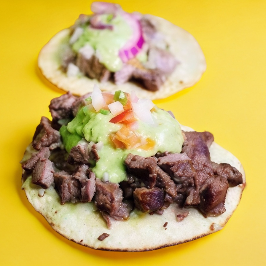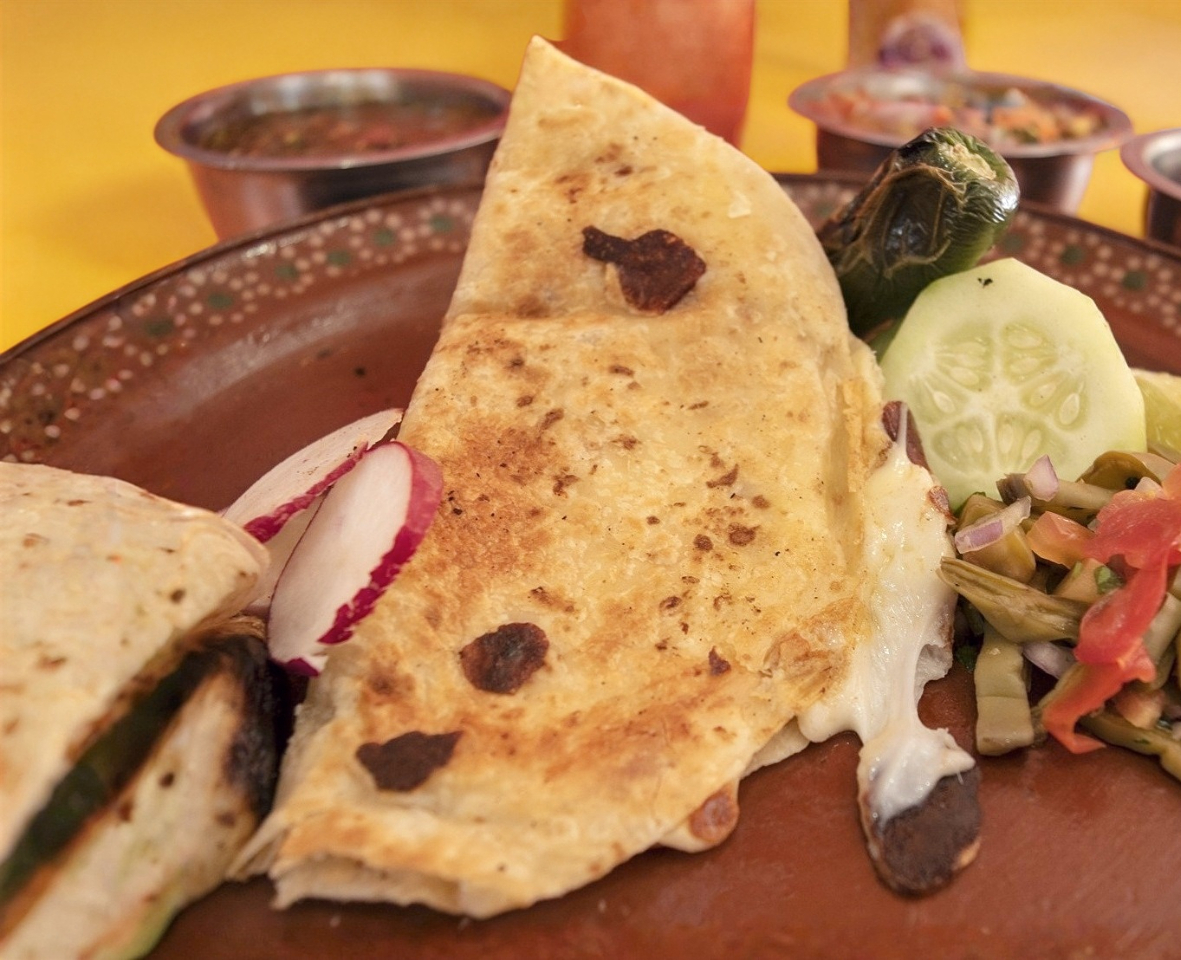2 Tortillas de harina empalmadas, con queso asadero y carne.