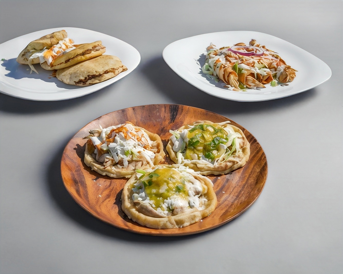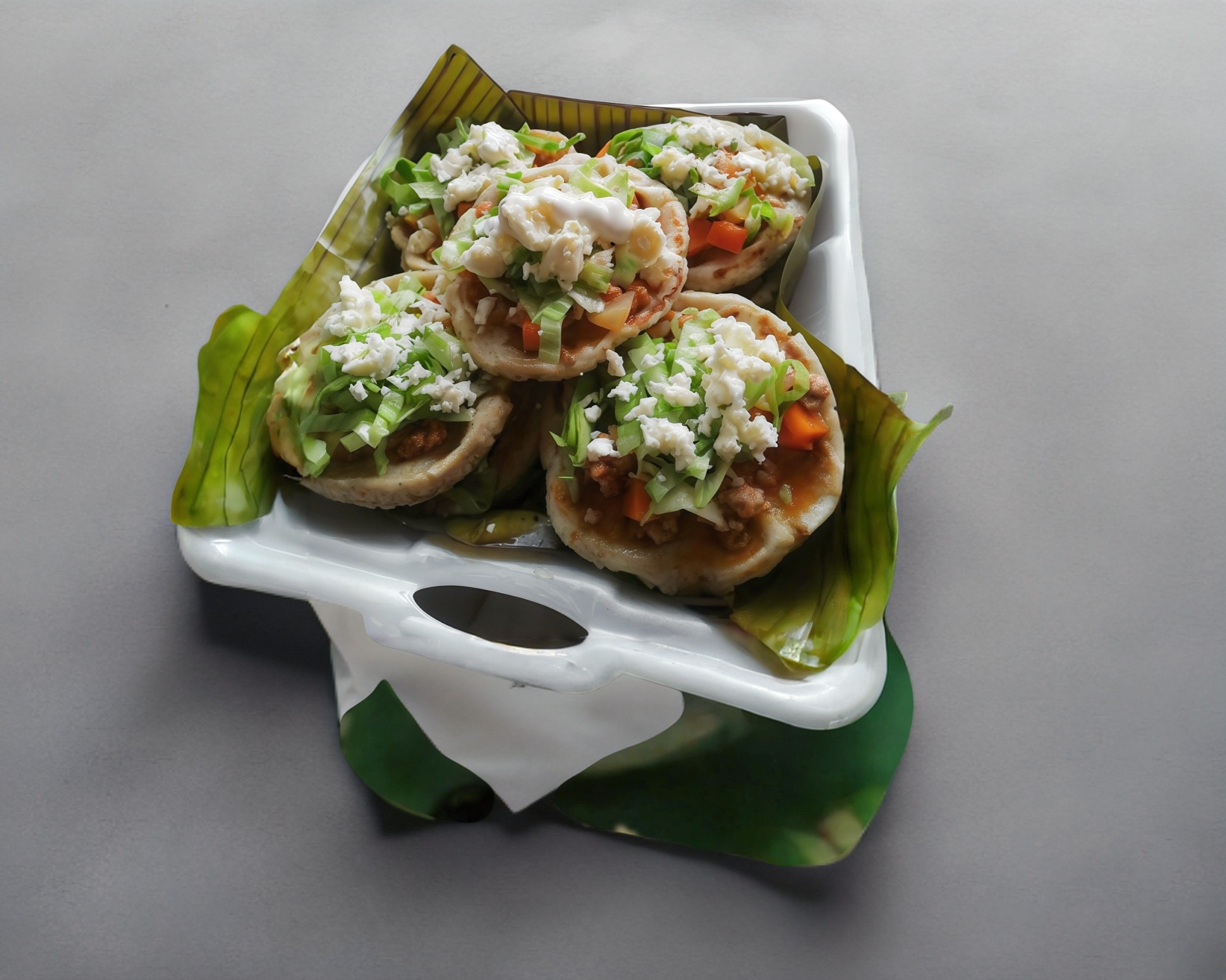 Gorditas de papa con chorizo*3 + Gorditas de chicharrón en salsa roja.*2 + Agua de Jamaica 1L*1