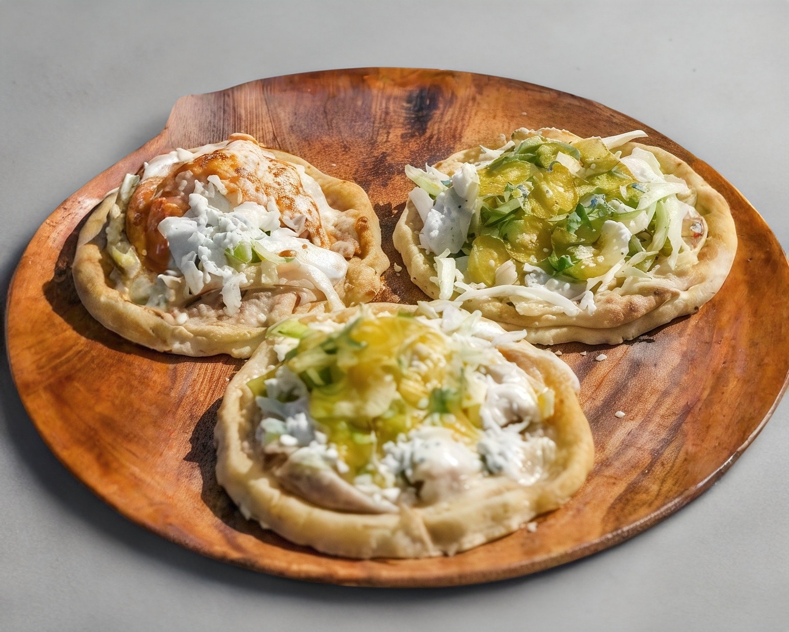 Tortilla de maiz con queso, cilantro y cebolla con un poco de salsa al gusto.