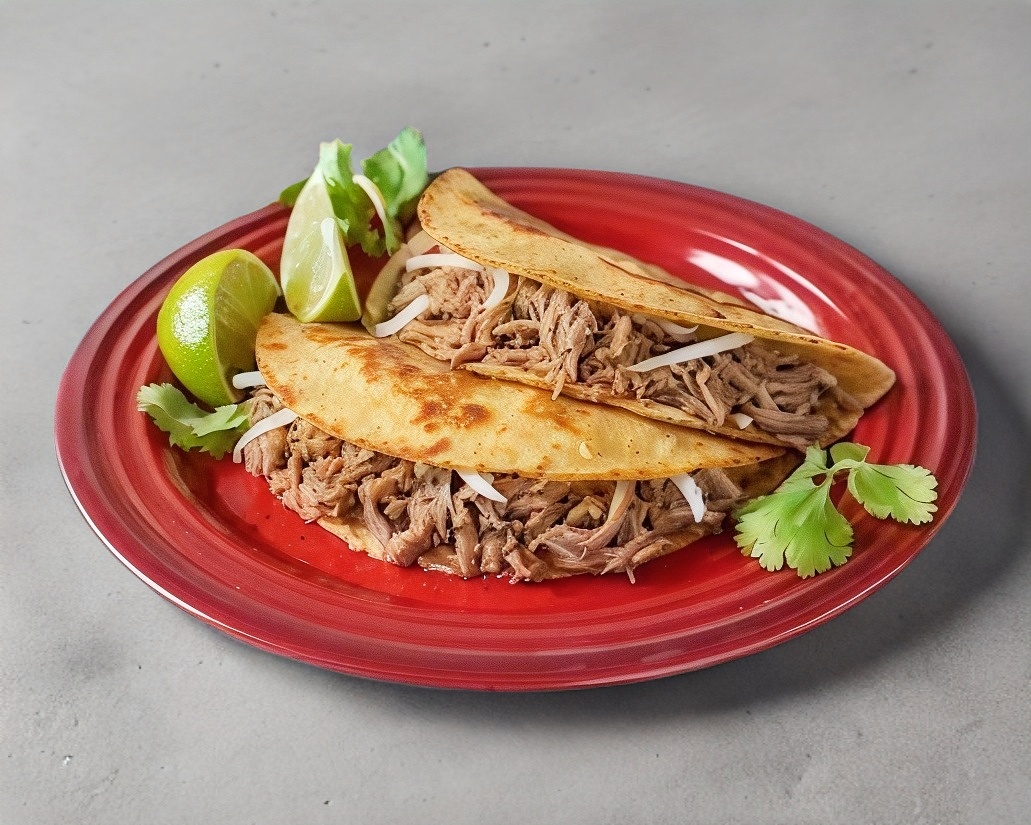 Con tortilla de maíz crujiente, por dentro rica barbacoa.