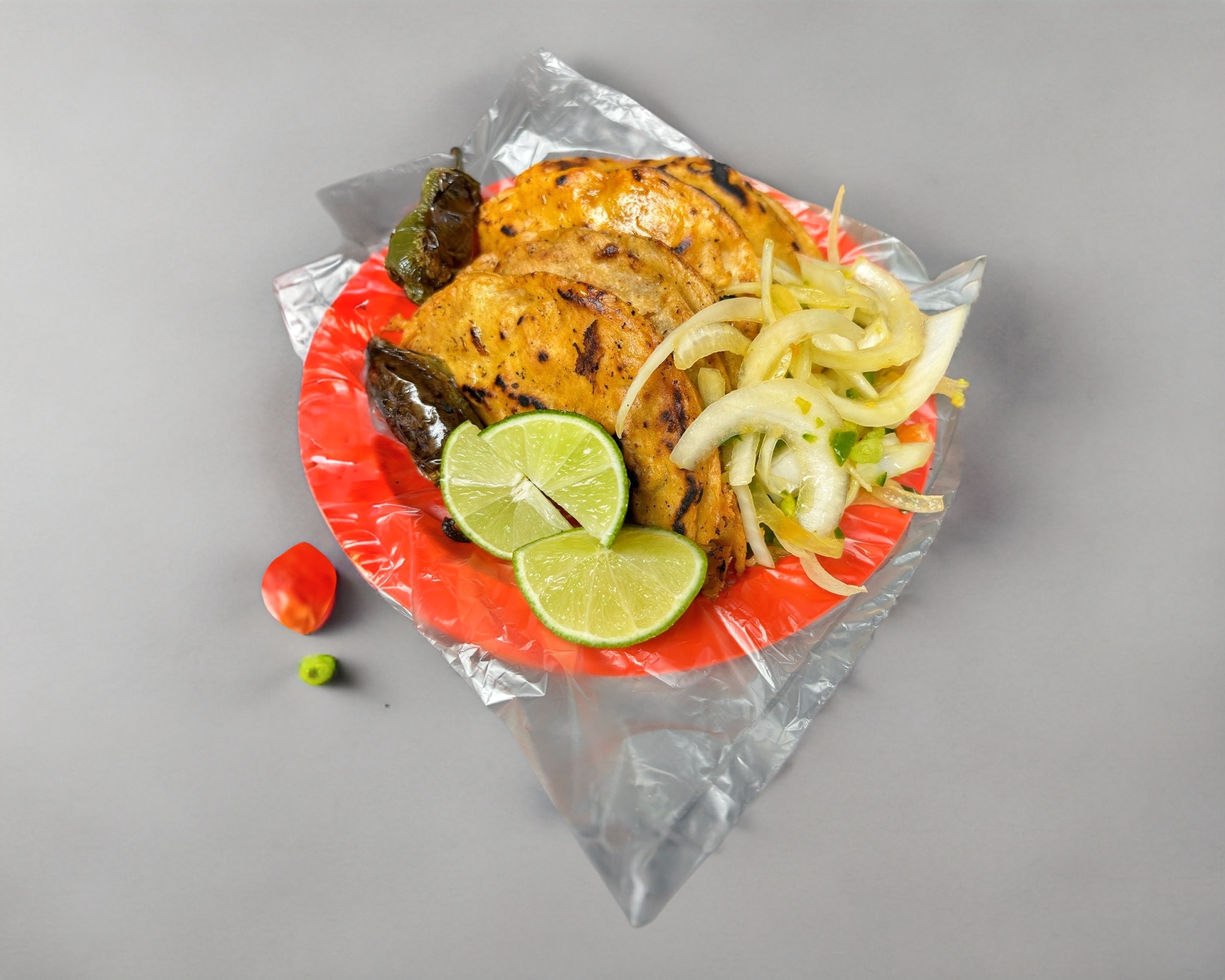 Con tortilla de maíz blandita, por dentro rica barbacoa.