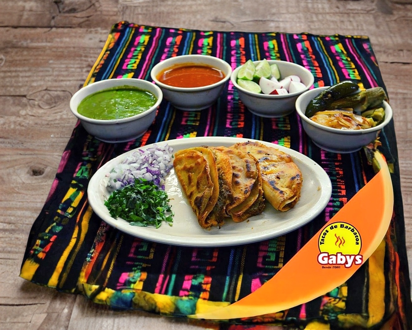 1 Taco de barbacoa de res, término dorado, acompañado de salsa y verdura por separado. Para una persona.