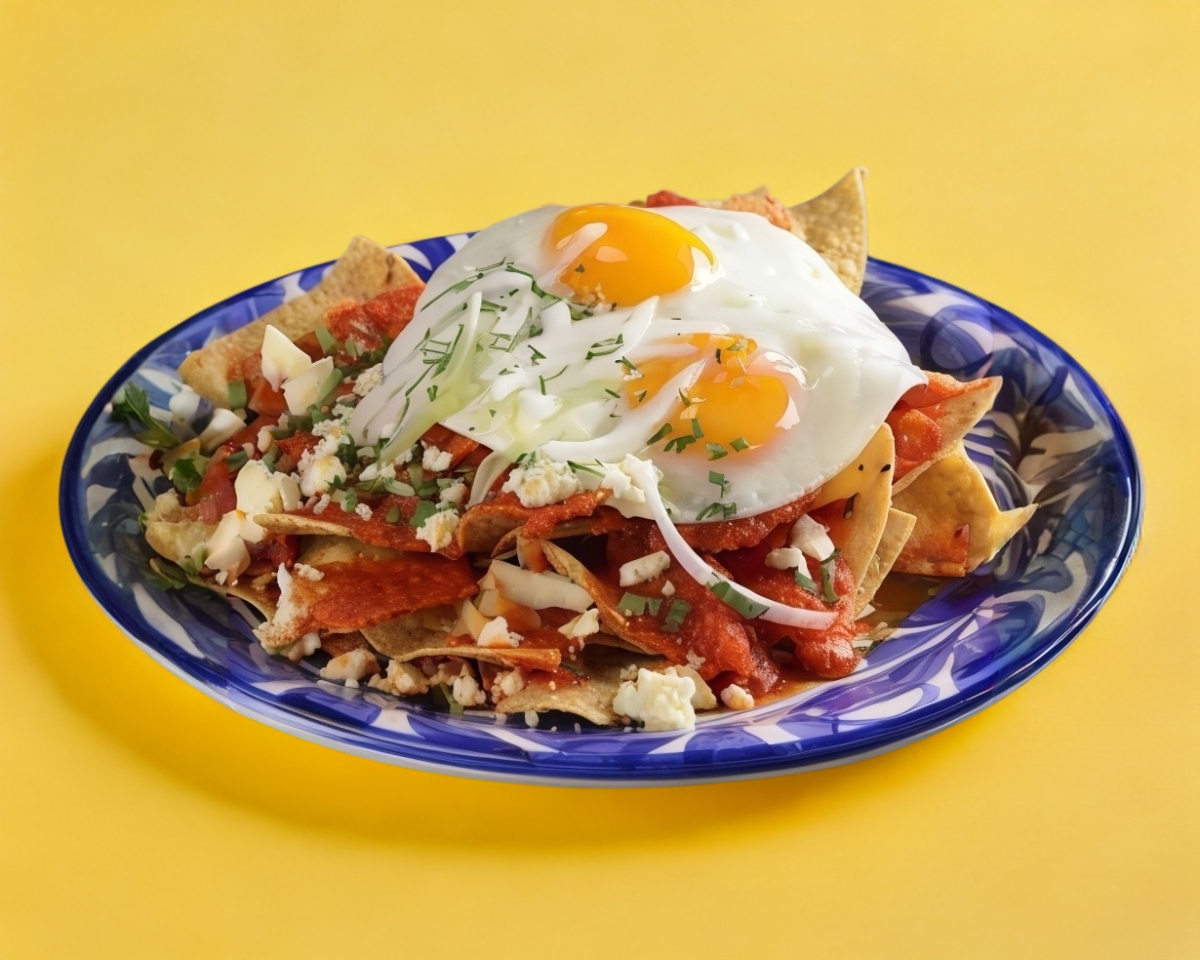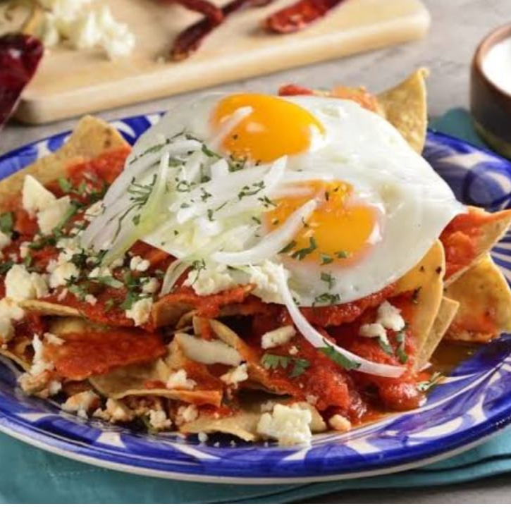 chilaquiles hechos al momento con su crema, cebolla y bolillo tipo fleima