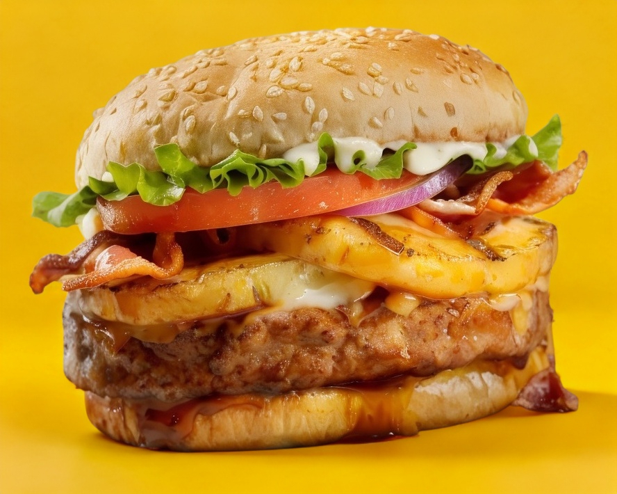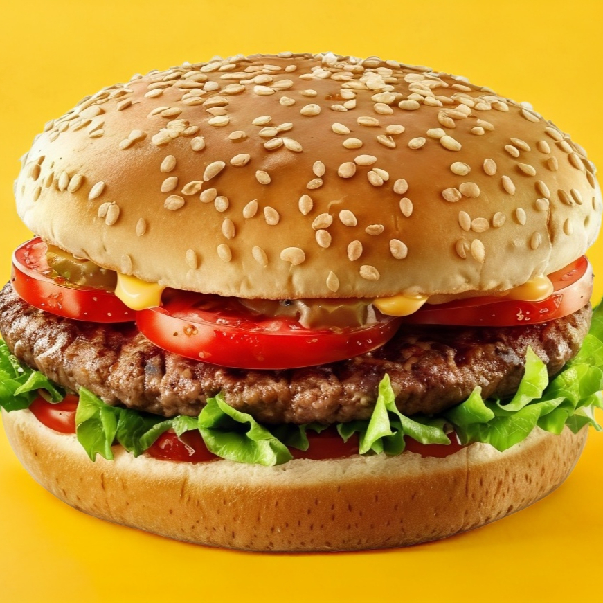 180 gramos de carne de res con su lechuga, aros de cebolla, jitomate y sus complementos crema, mayonesa, cátsup