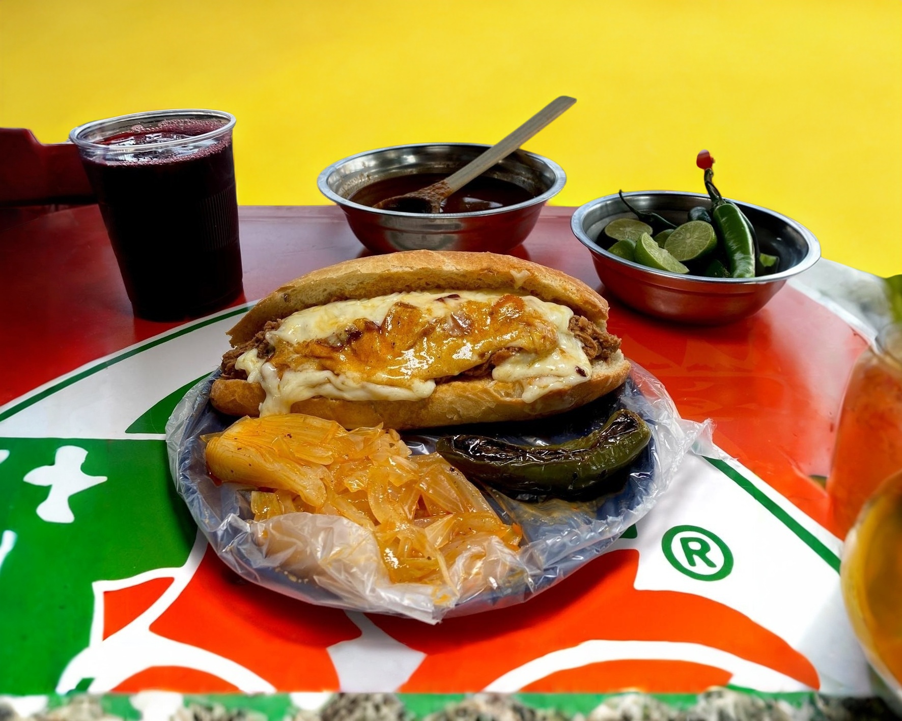 Birote calientito con deliciosa barbacoa y queso derretido.