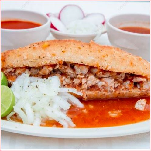 Salsas, cebolla, cilantro, cebolla guisada, rábanos y consomé.