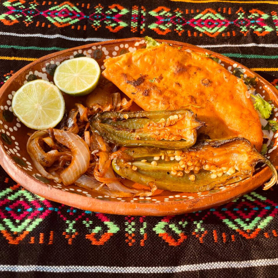 1 Taco de Birria (sin queso) con la carne volteada a la plancha el cual incluye de acompañante: cebollita guisada, chile toreado, pepino, rabano y limon. (cebolla y cilantro aparte)
