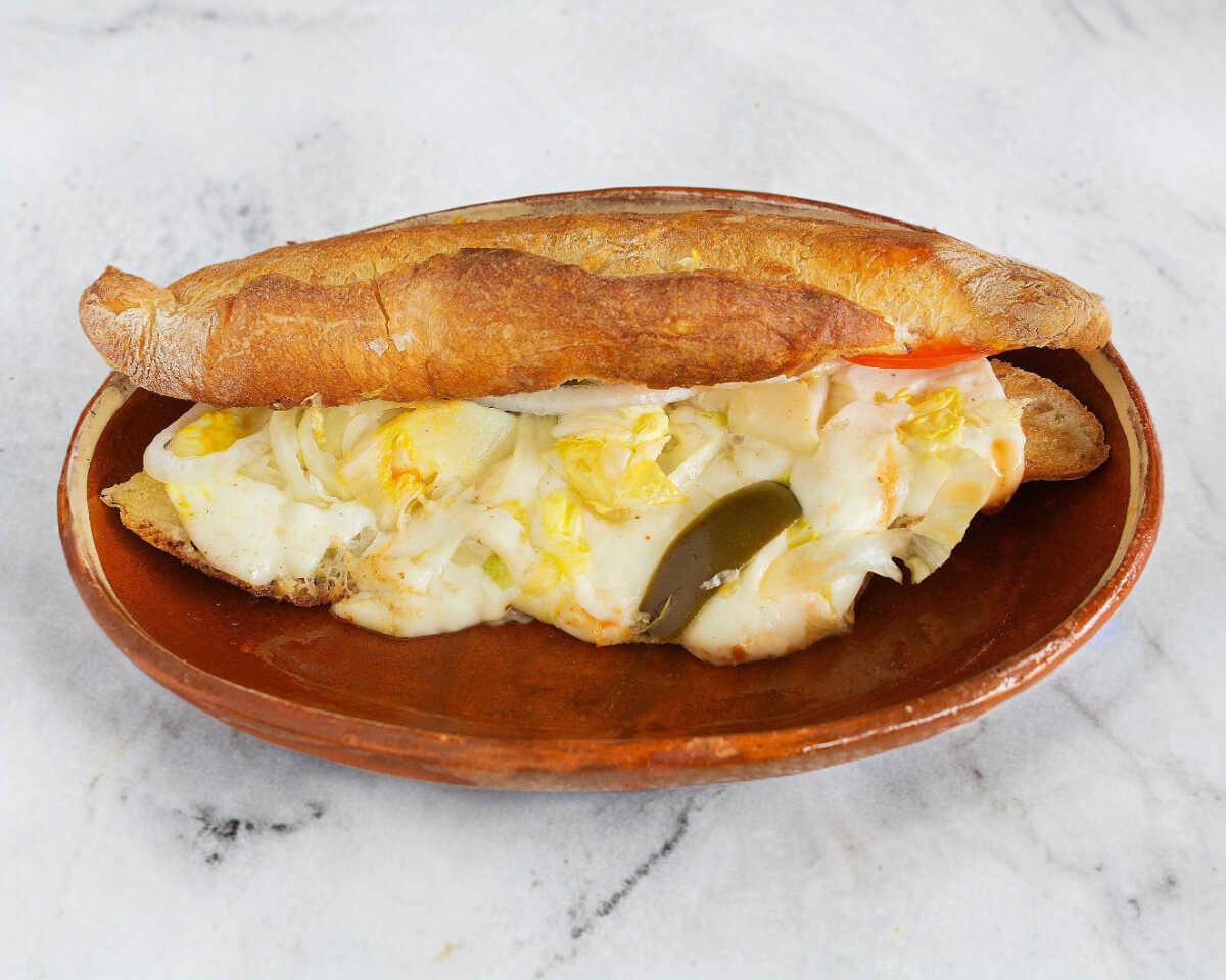 Bolillo fleima le ponemos crema,lo doramos en la plancha,la panela se pone en la plancha,se dor un poco y le ponemos su verdura,lechuga,cebolla ,jitomate y chile en vinagre más sus aderezos ,queda delicioso