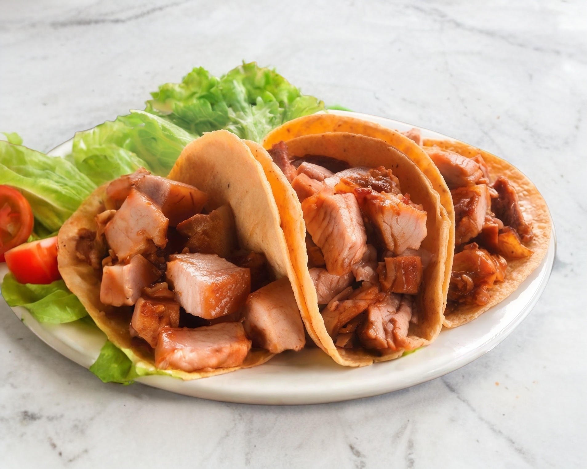 Delicioso taco de cuerito y trompa, acompañado de verduras y salsas.