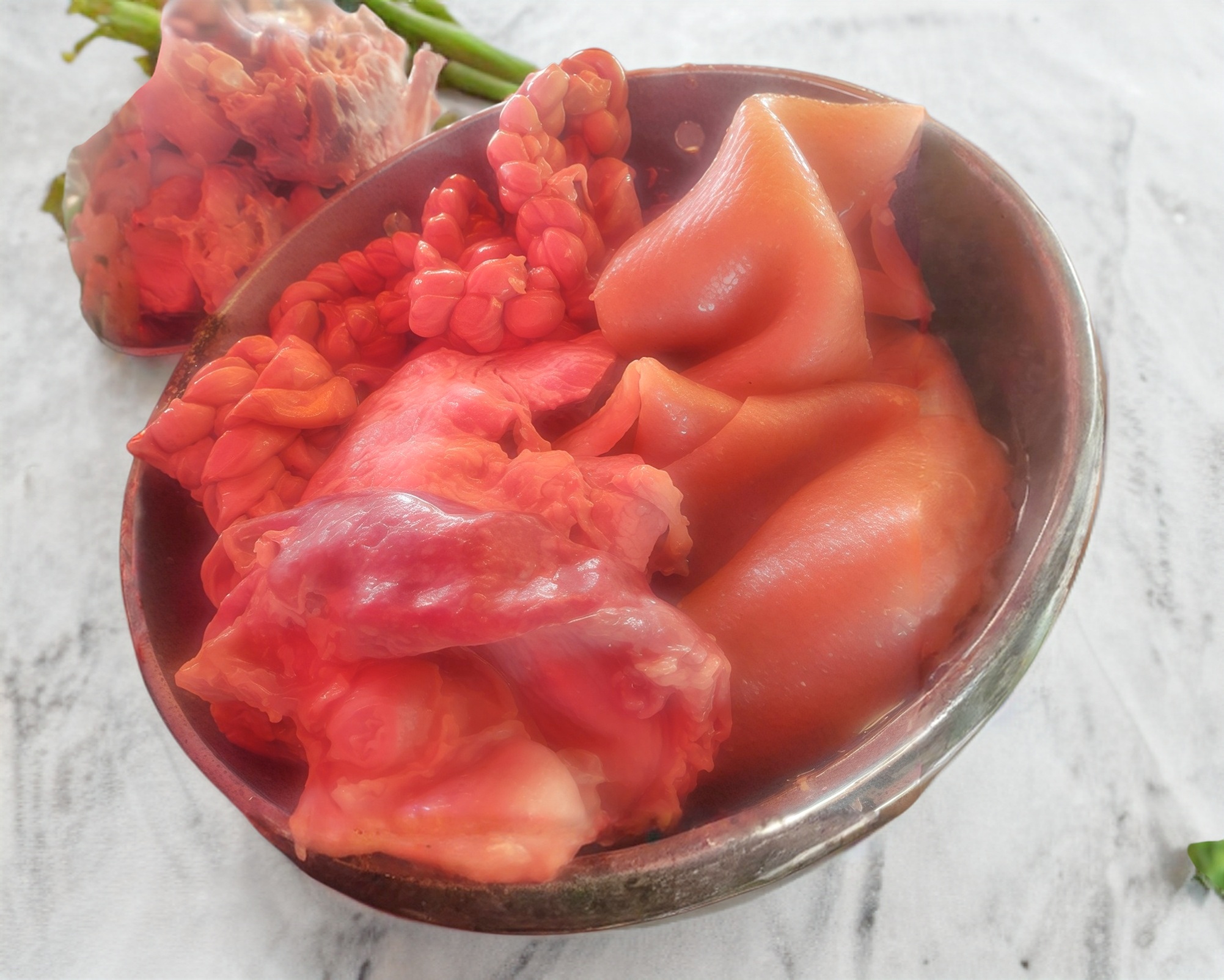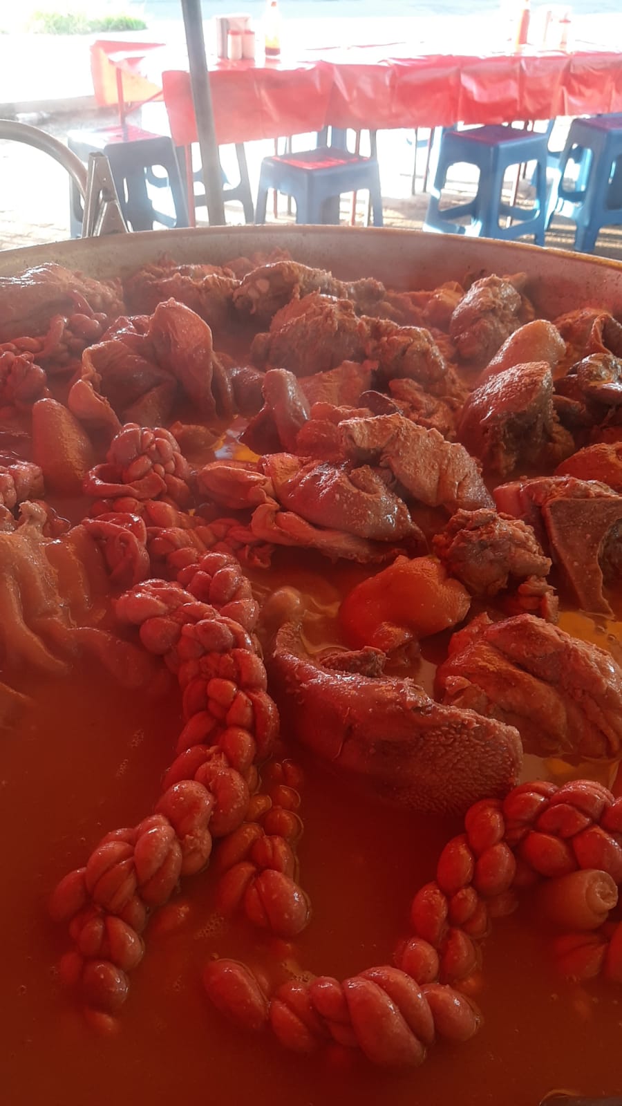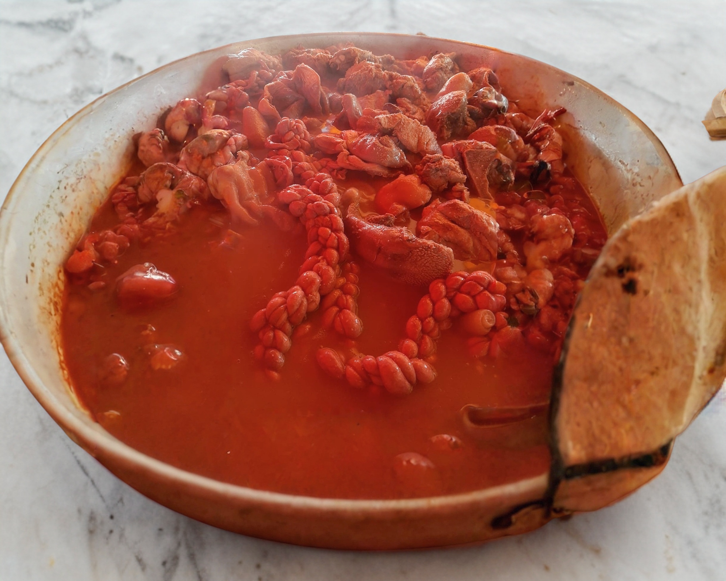 Deliciosa orden de buche con cuerito, acompñada de verduras, salsas y tortillas.