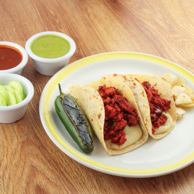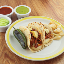 Combo de 3 tacos a elegir (asada, combinado, pastor, chorizo, Barbacoa), una bebida a elegir (agua fresca o refresco), un consomé.