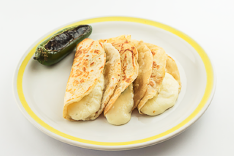 Barbacoa de res, tortilla de maíz, queso gratinado.