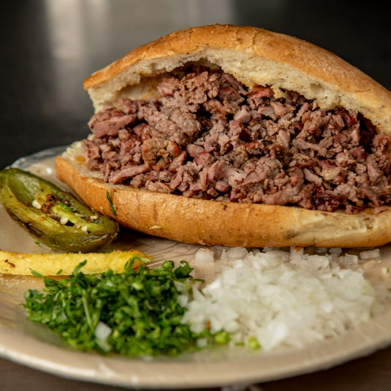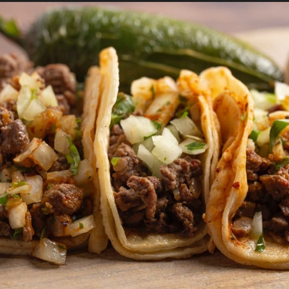 Taco de arrachera con tortilla de tamaño normal a la plancha