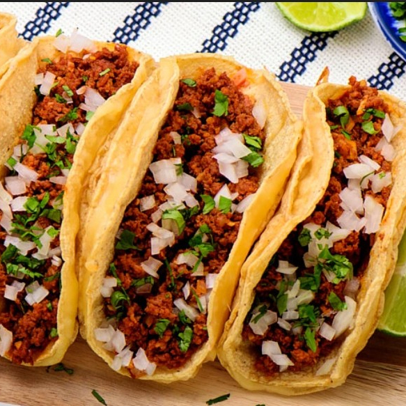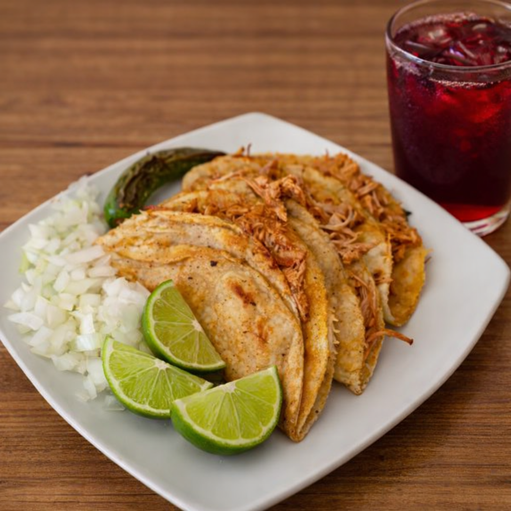 4 tacos a elegir con medio de agua a elegir y un consomé