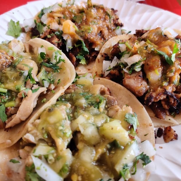 Bistec tripa pastor Incluye tortillas salsas rábanos cebollitas guisadas y doraditas