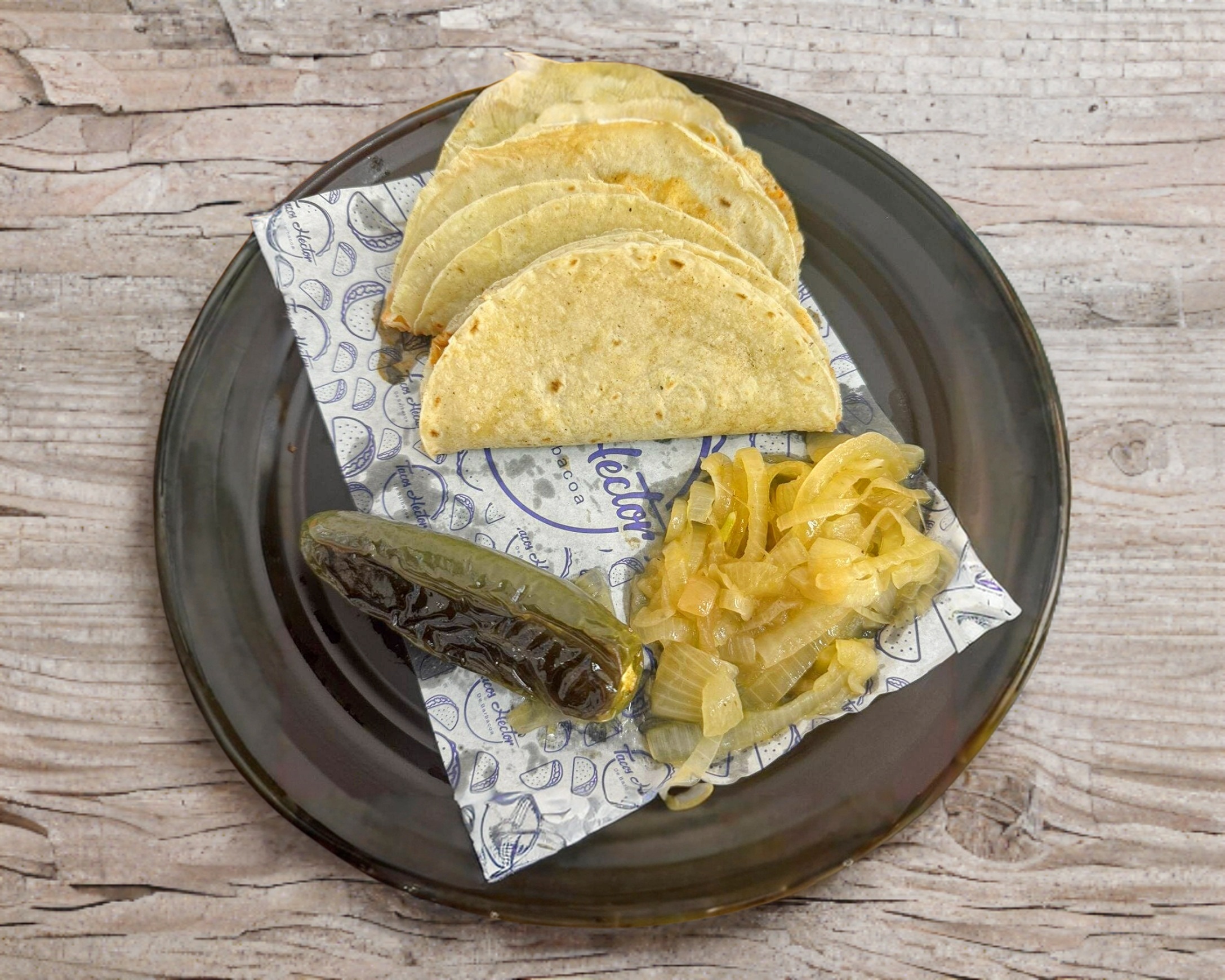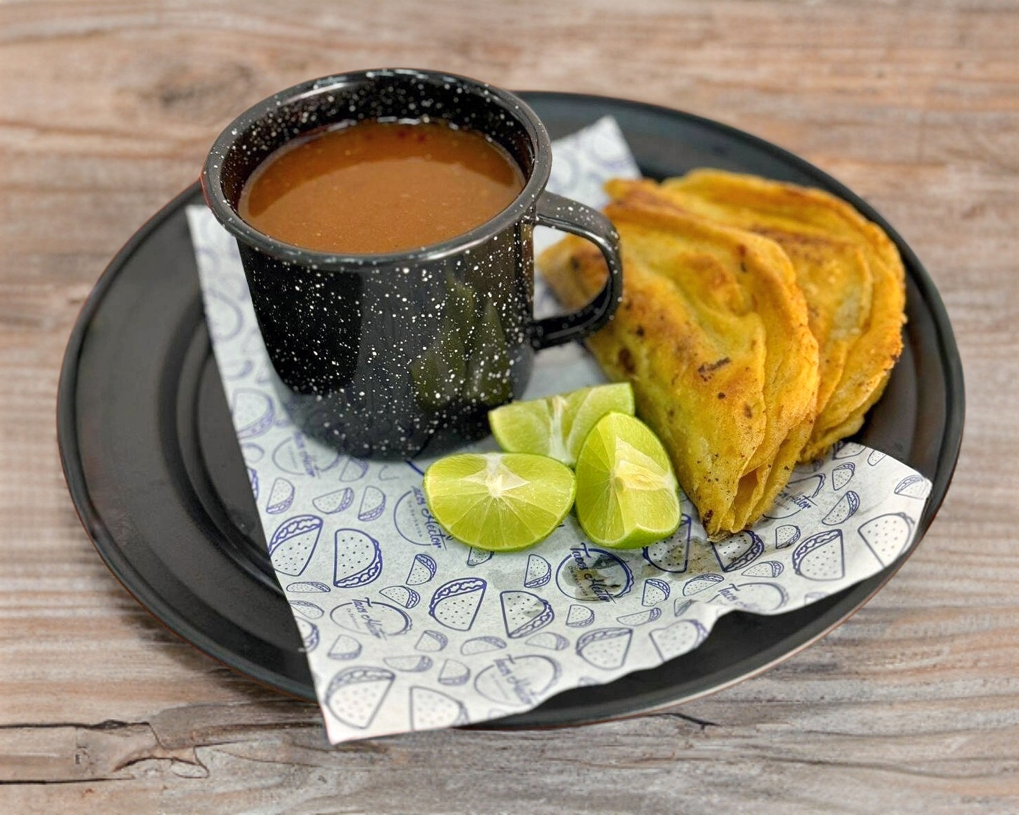 Taco Dorado*20 + Consomé*2 + Pepsi 355 ml*1 + Seven Up 355 ml*1 + Manzanita 355 ml*1 + Pepsi Light 355 ml*1