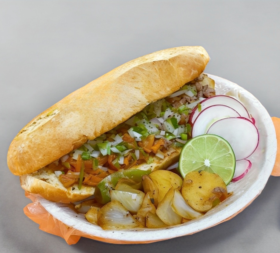 Delicioso taco de suadero ( 1 unidad ): tortilla de maíz taquera, verdura(cebolla y cilantro),limón, rábano, pepino, salsa con chile y sin chile, cebollas y 1 porcion de papas cocidas.
