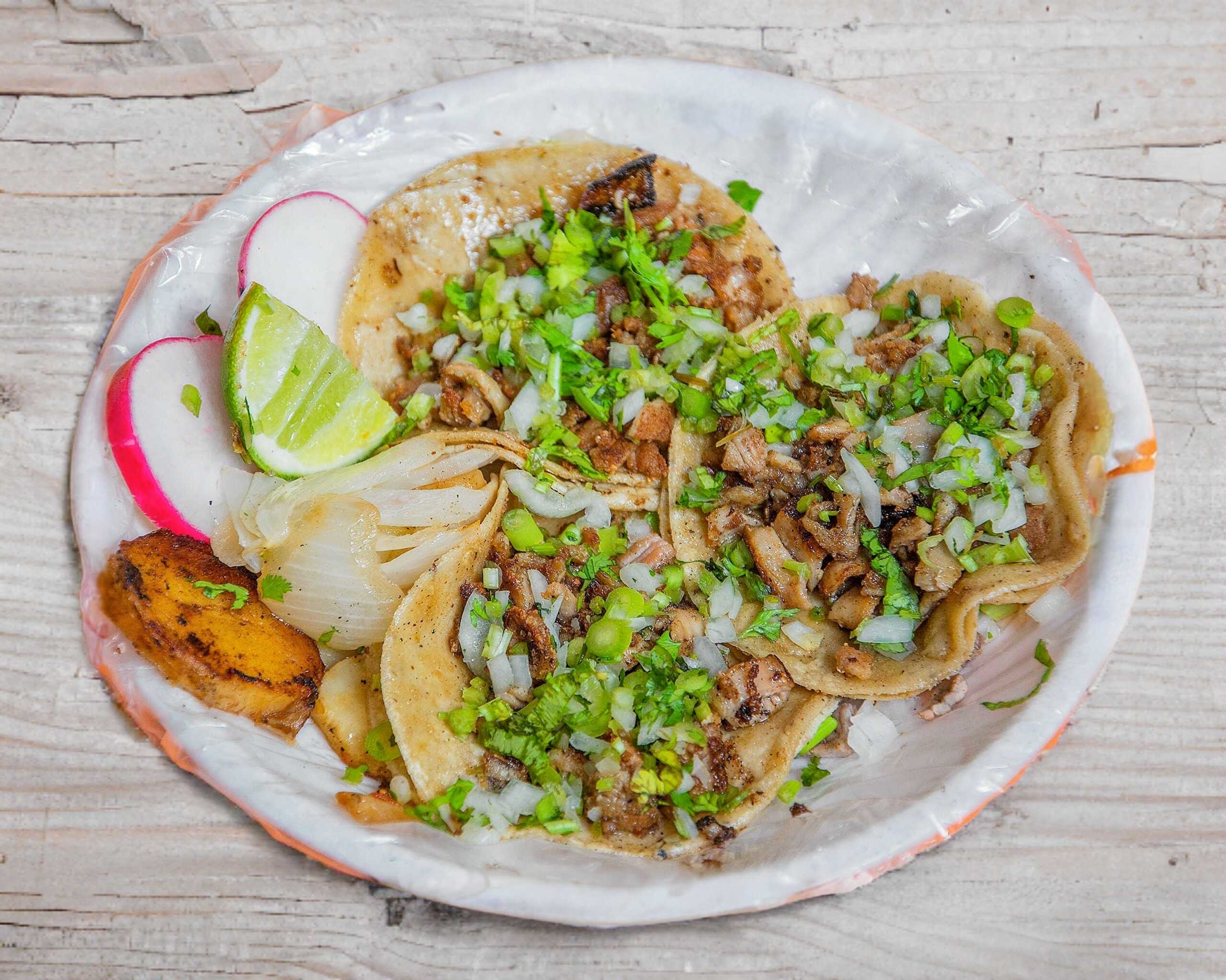 1 Delicioso taco de tripa. cebolla silantro guacacomes pepino rabano chile para una persona