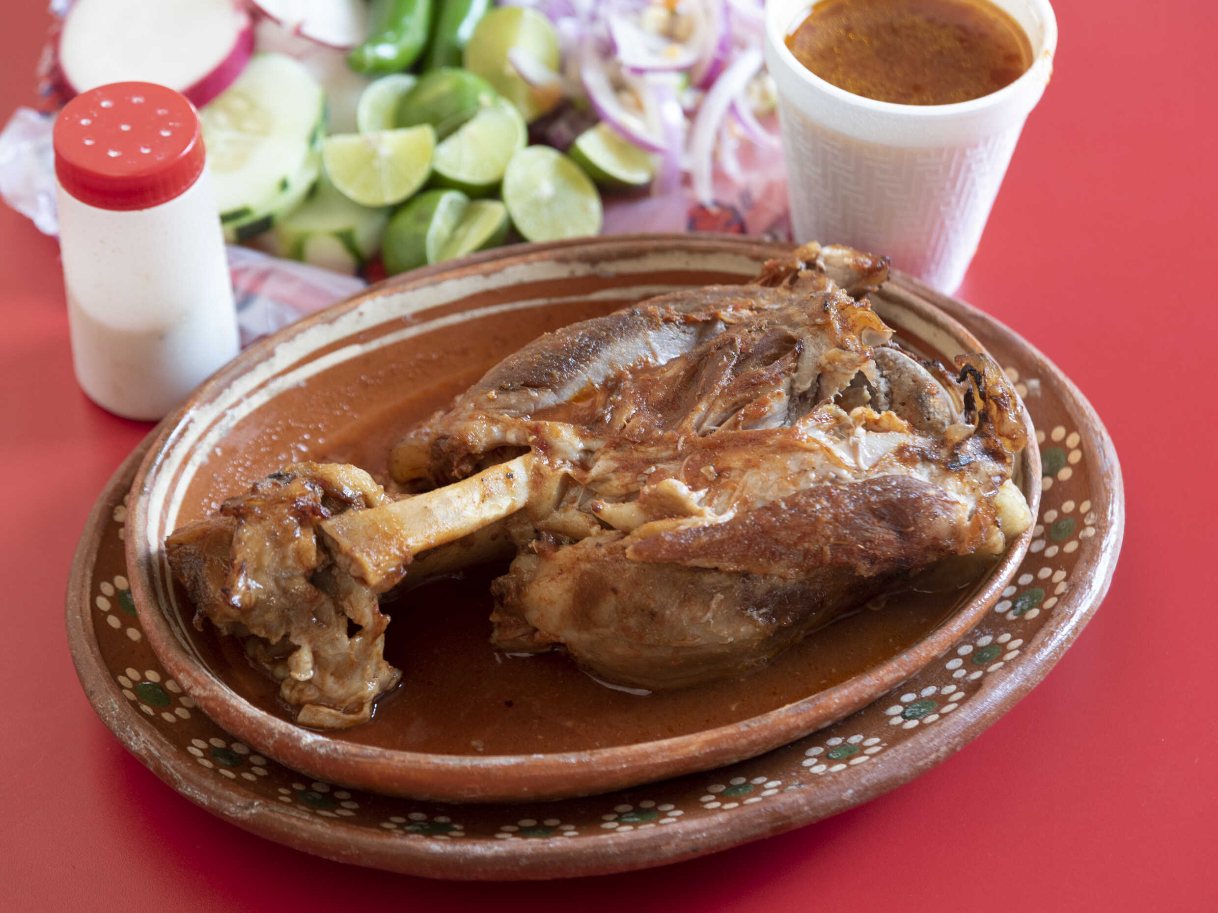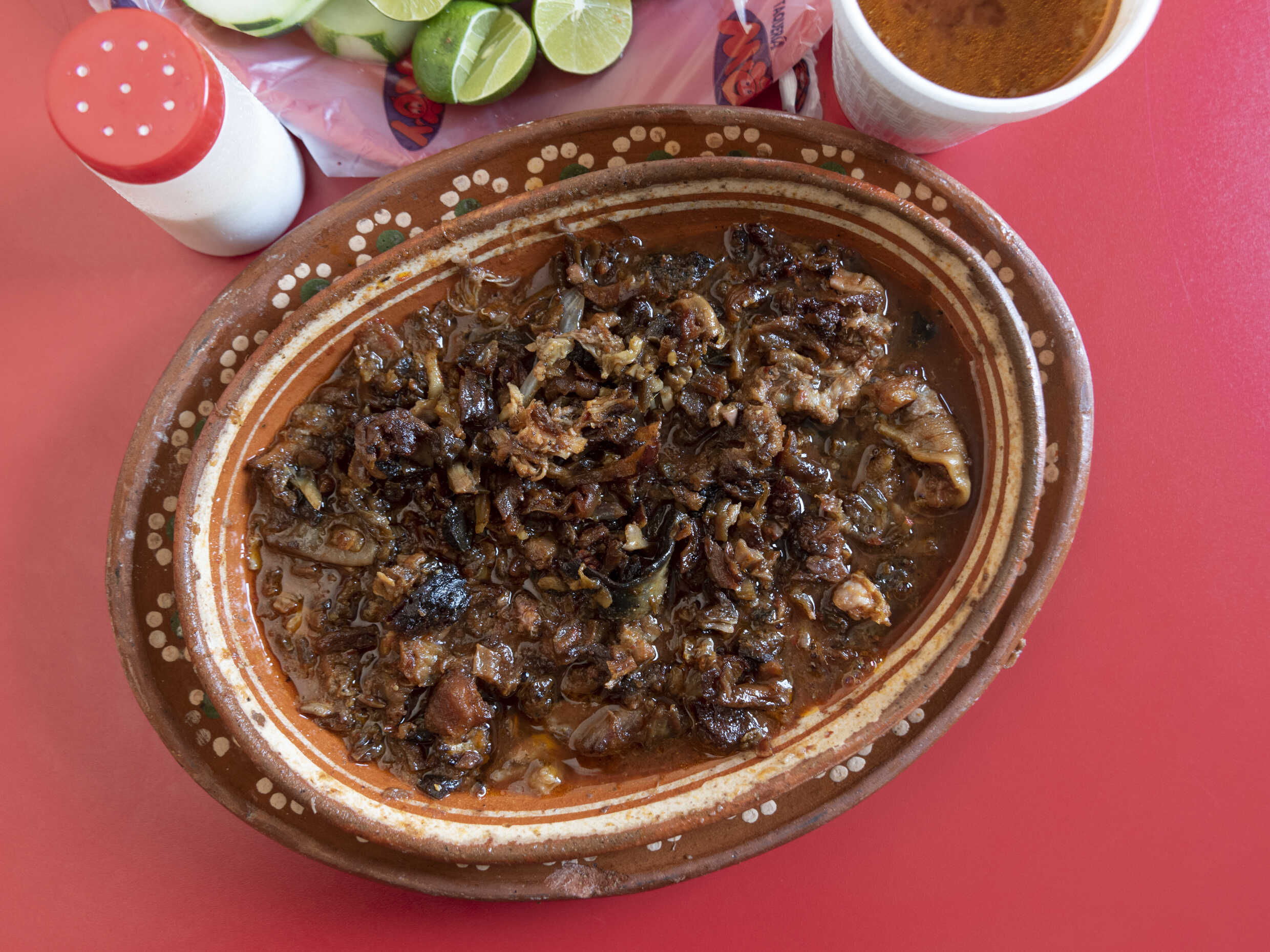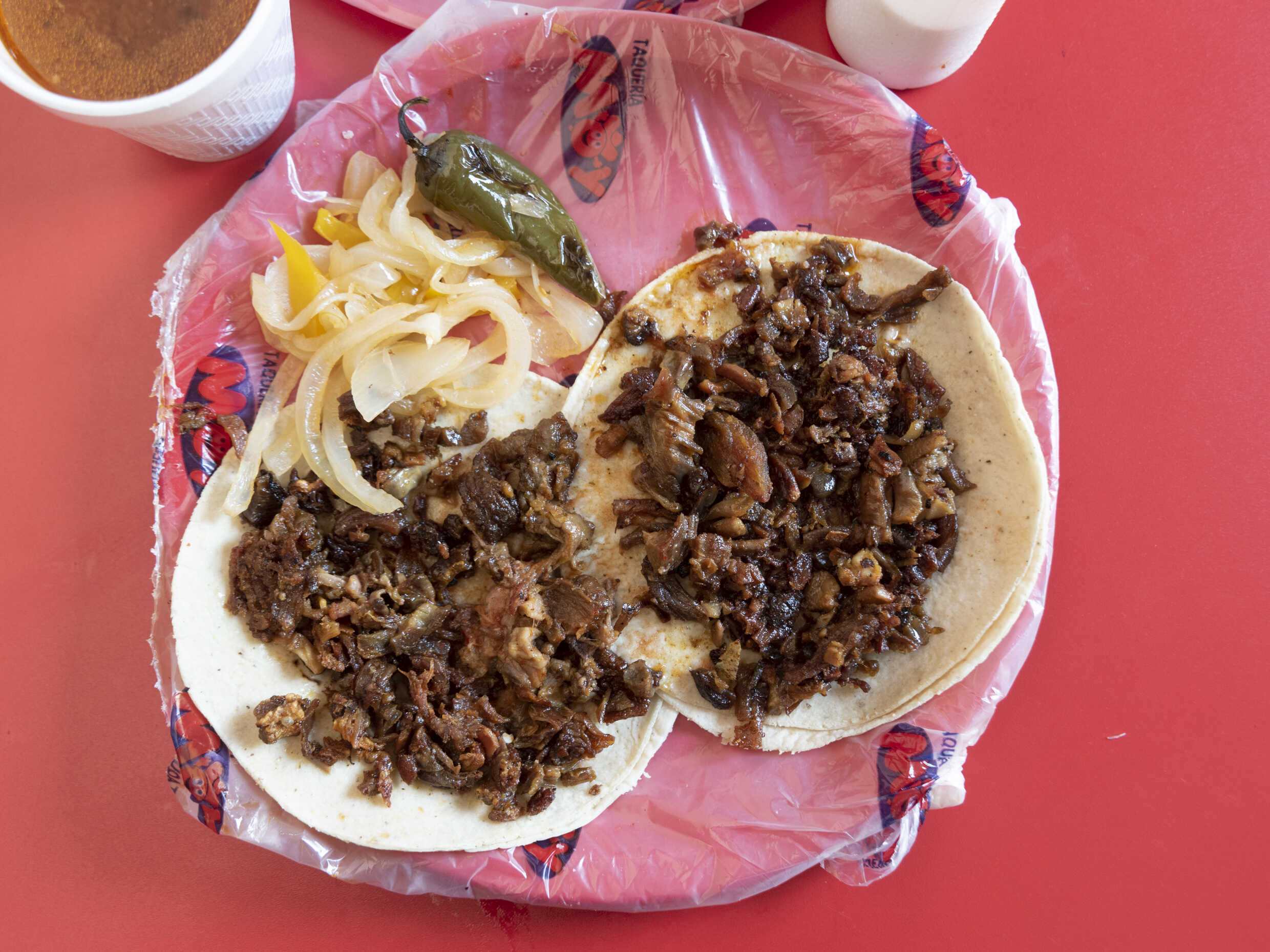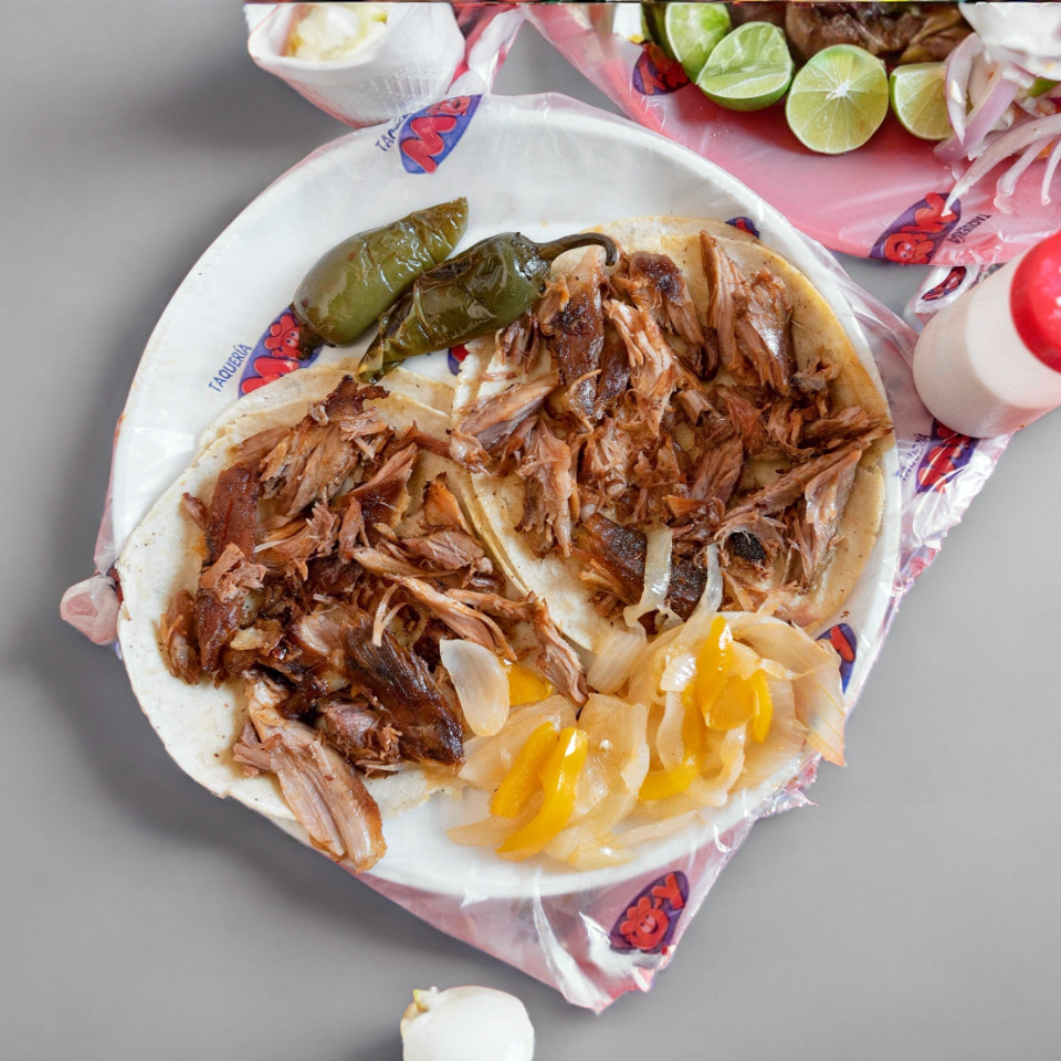 Taco de Birria: 1pzs cebolla guisada, chile toreado, rábano, pepino