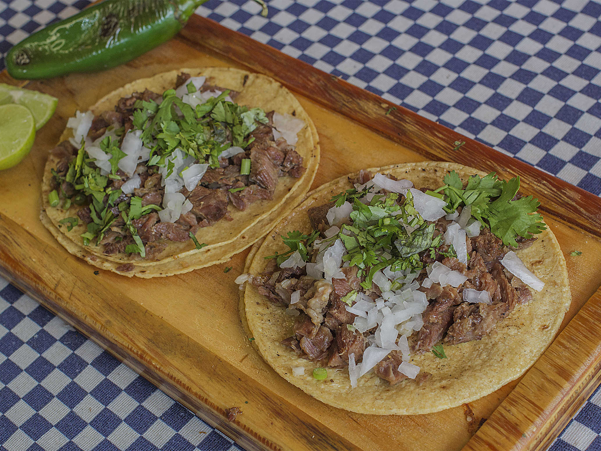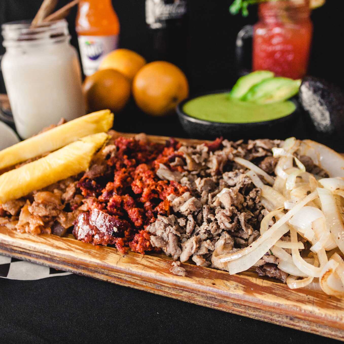 250gm de hasta 3 diferentes carnes, + frijoles, cebolla, cilantro, cebolla asada, chie asado, tostadas y tortillas