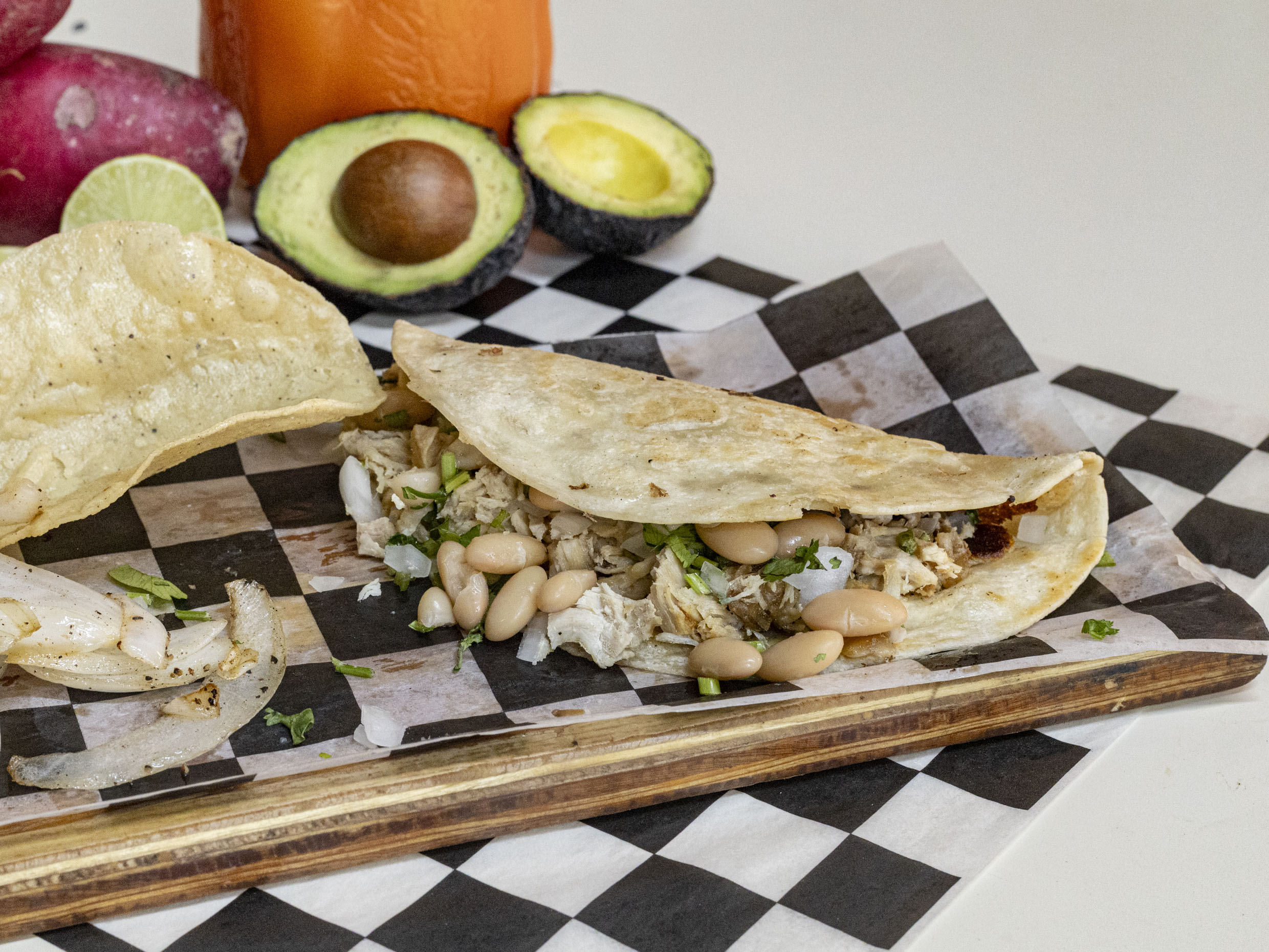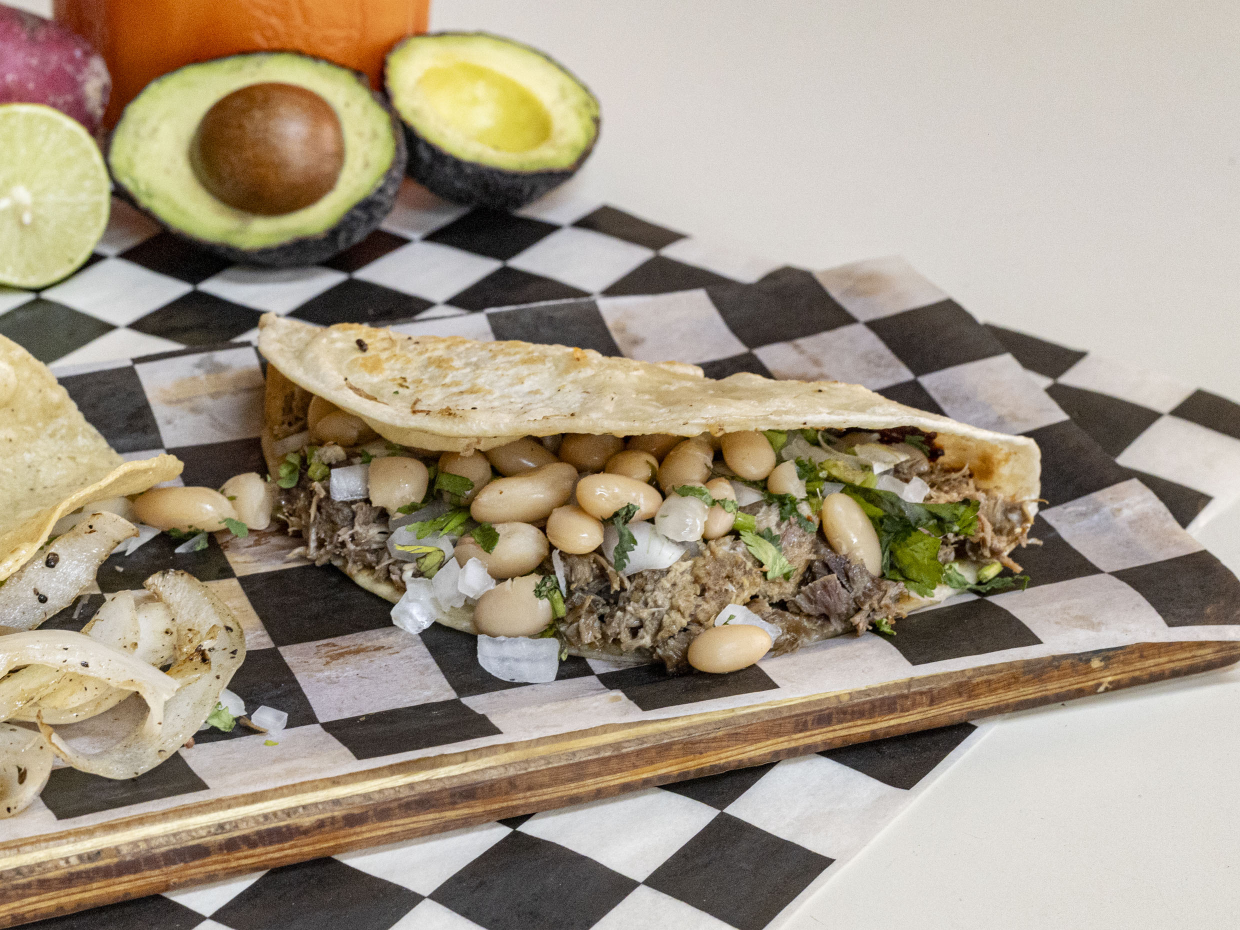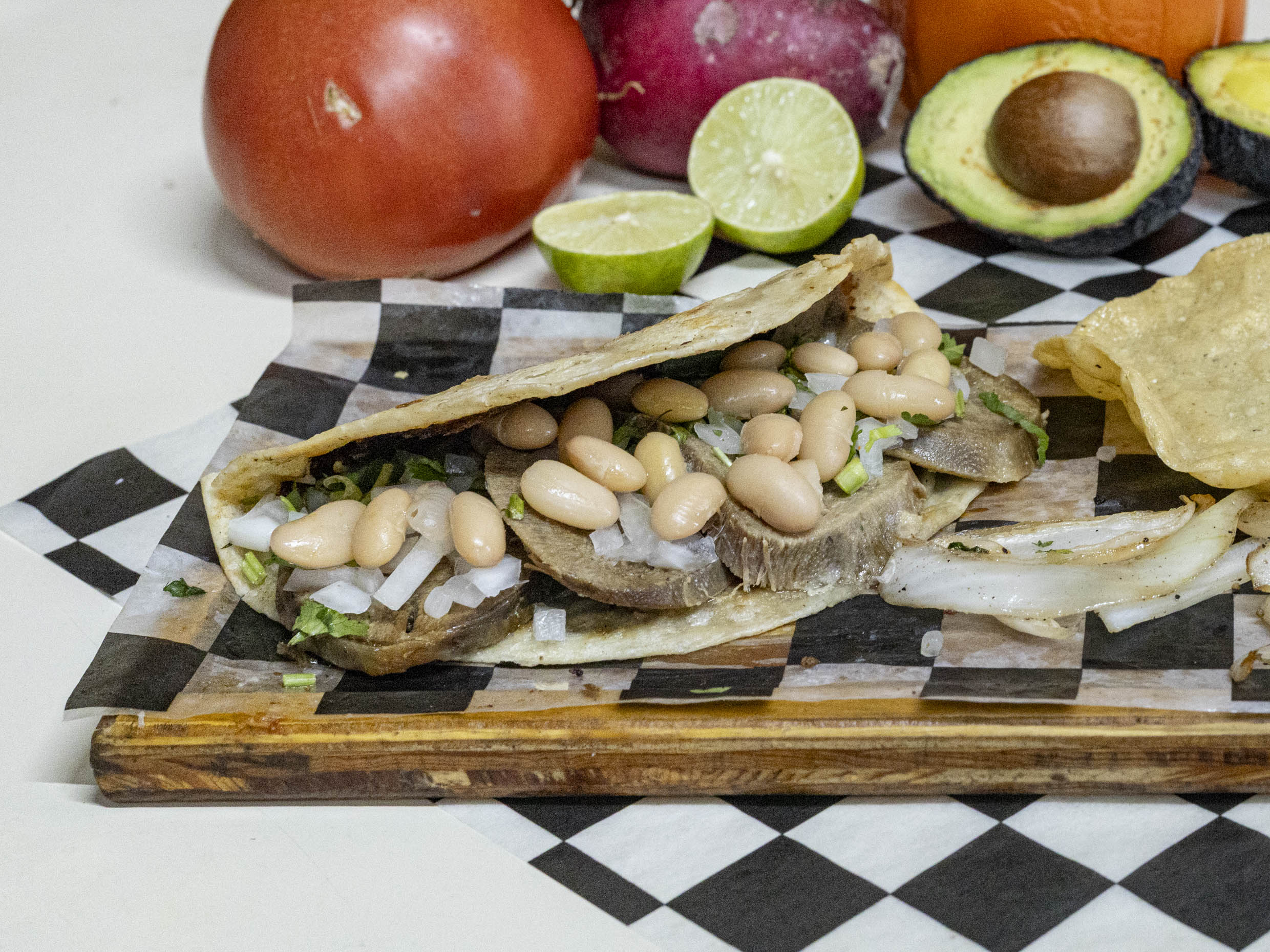 200gm de hasta 2 diferentes carnes, + frijoles, cebolla, cilantro, cebolla asada, chie asado, queso, tostadas y tortillas