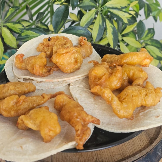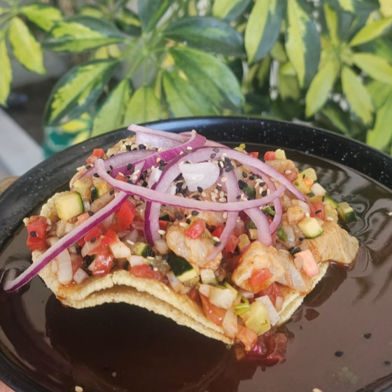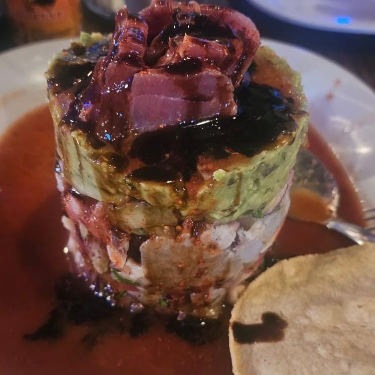 Botanas para picar (camarón cocido, camarón crudo, pulpo y atún).