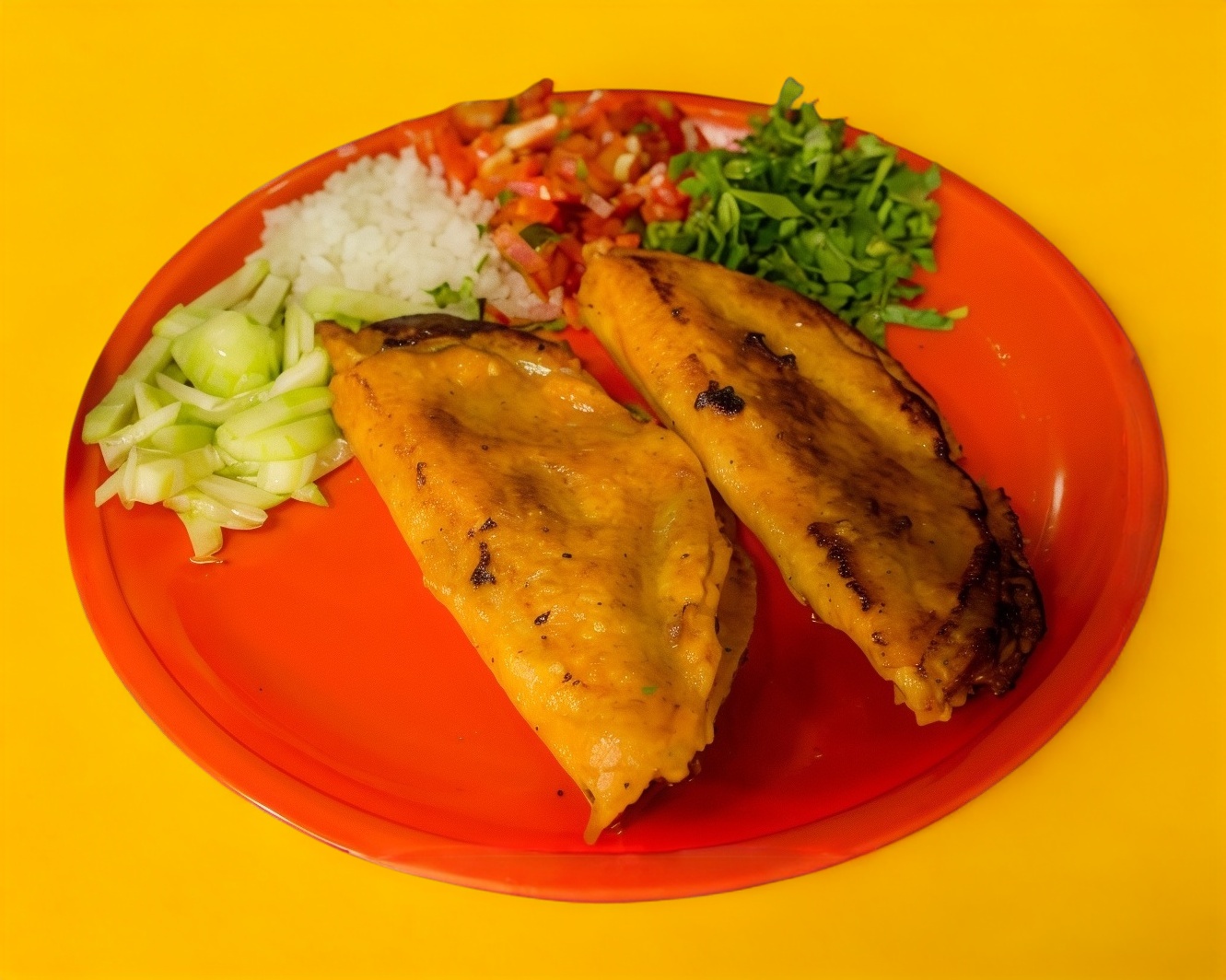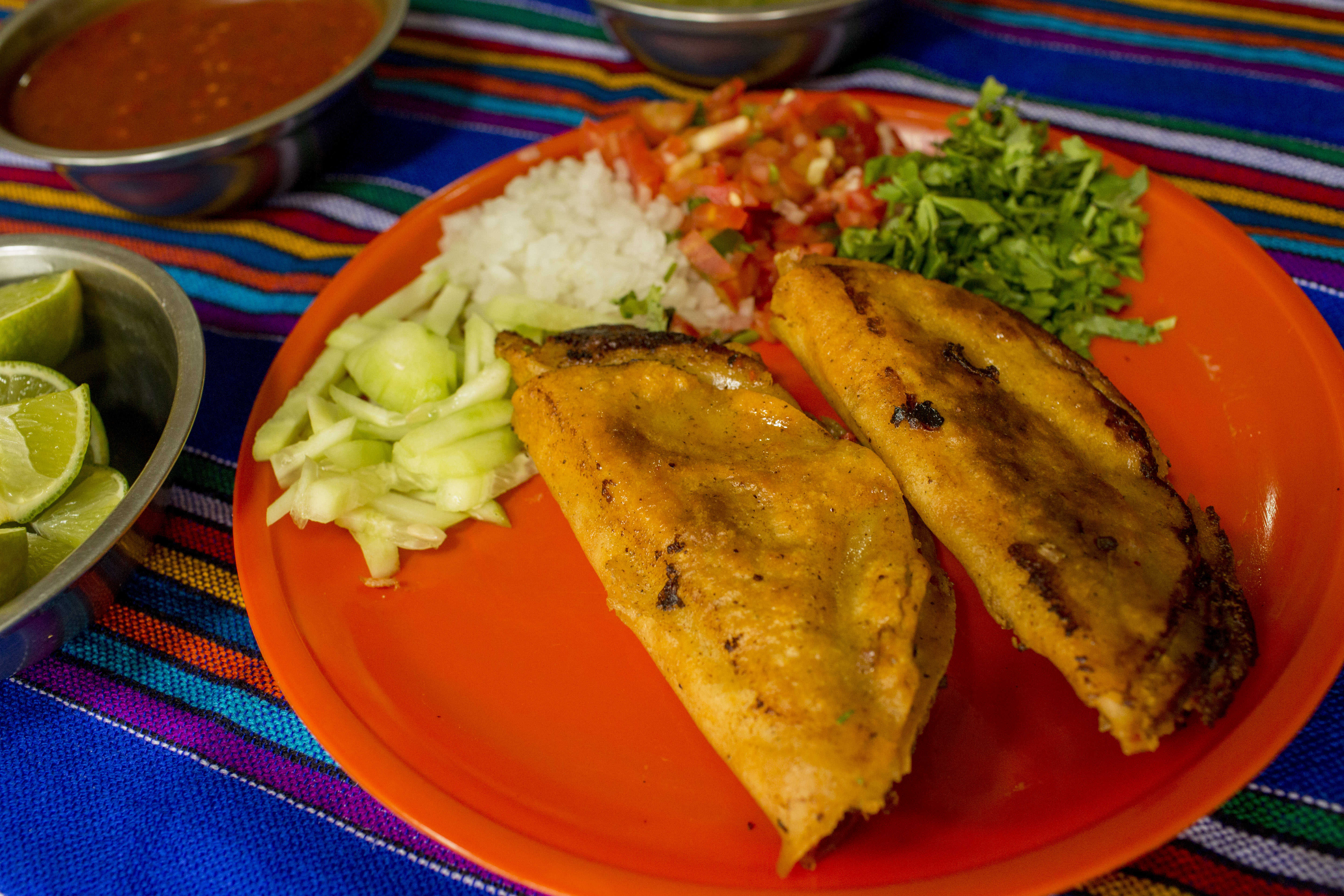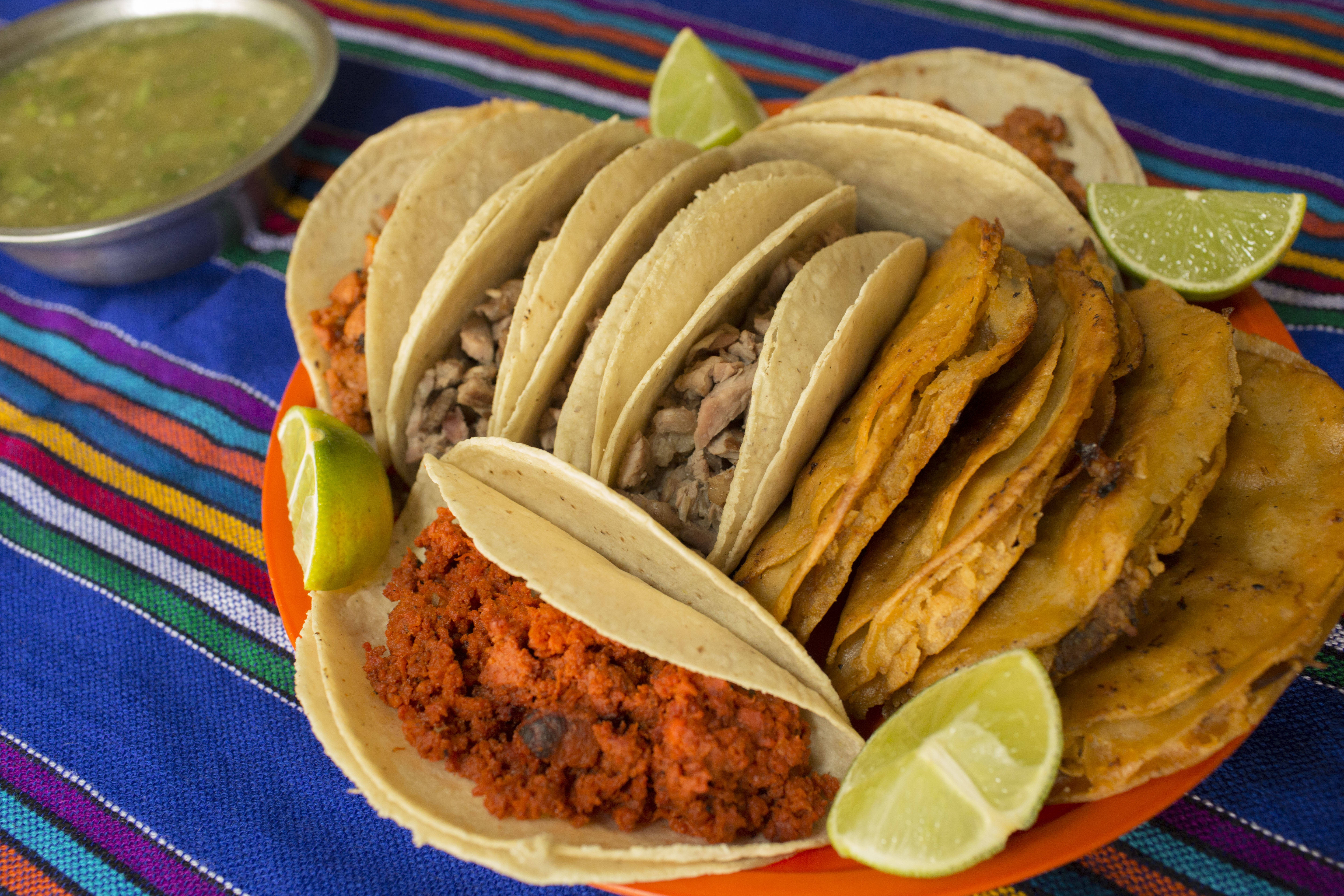 5 Tacos con doble tortillas de maíz, con las carnitas de tu elección, acompañado de cebolla, pepino, guacamole y salsas. + Refresco de 400 ml sabor según disponibilidad*1