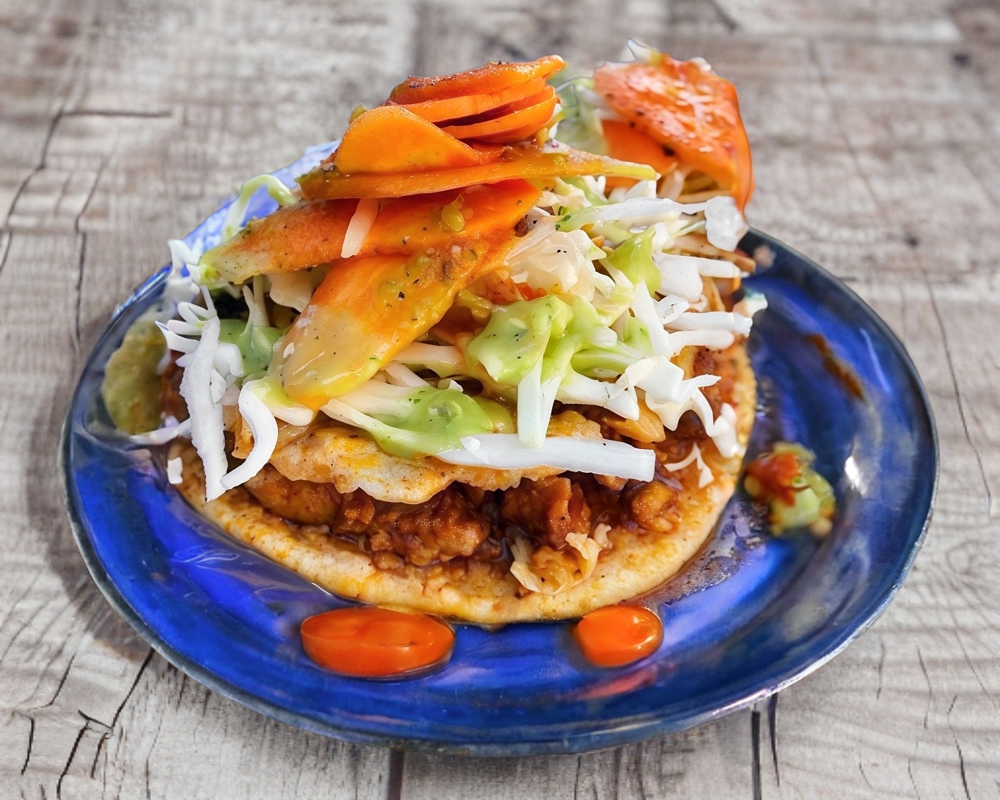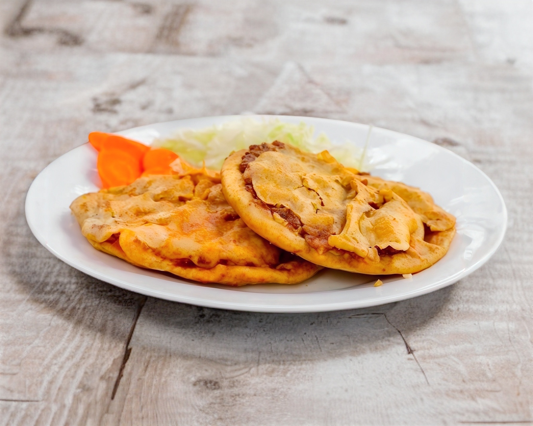 Deliciosa gordita rellena de lomo, incluye salsa. (Porción personal)
