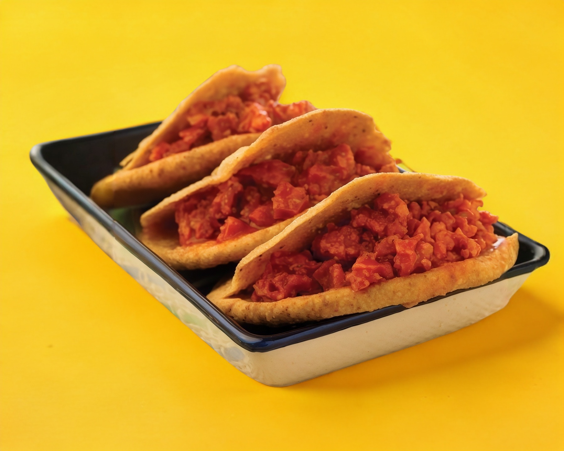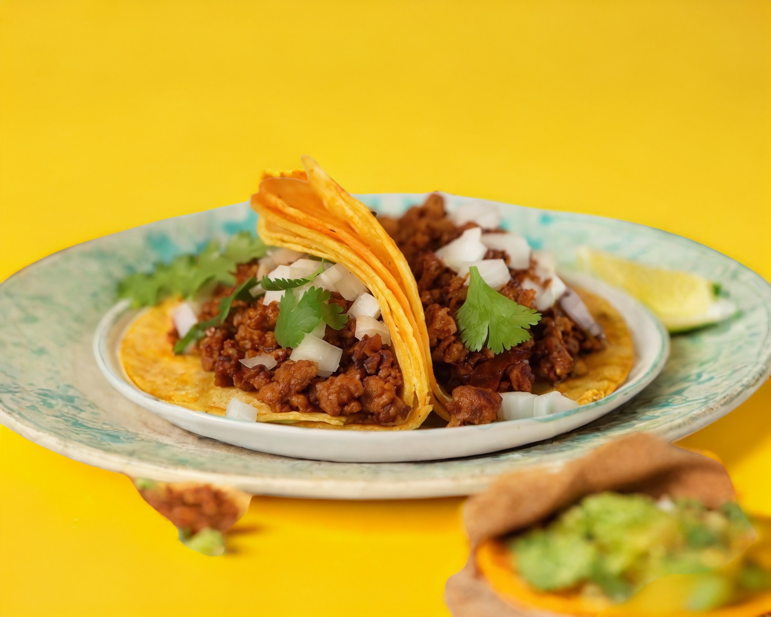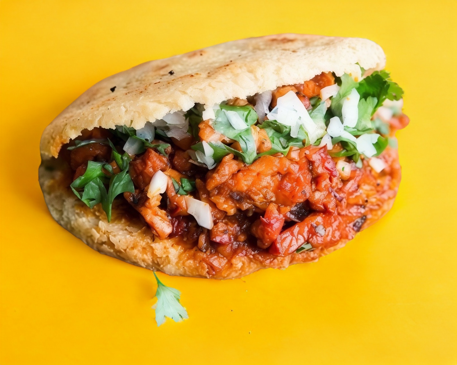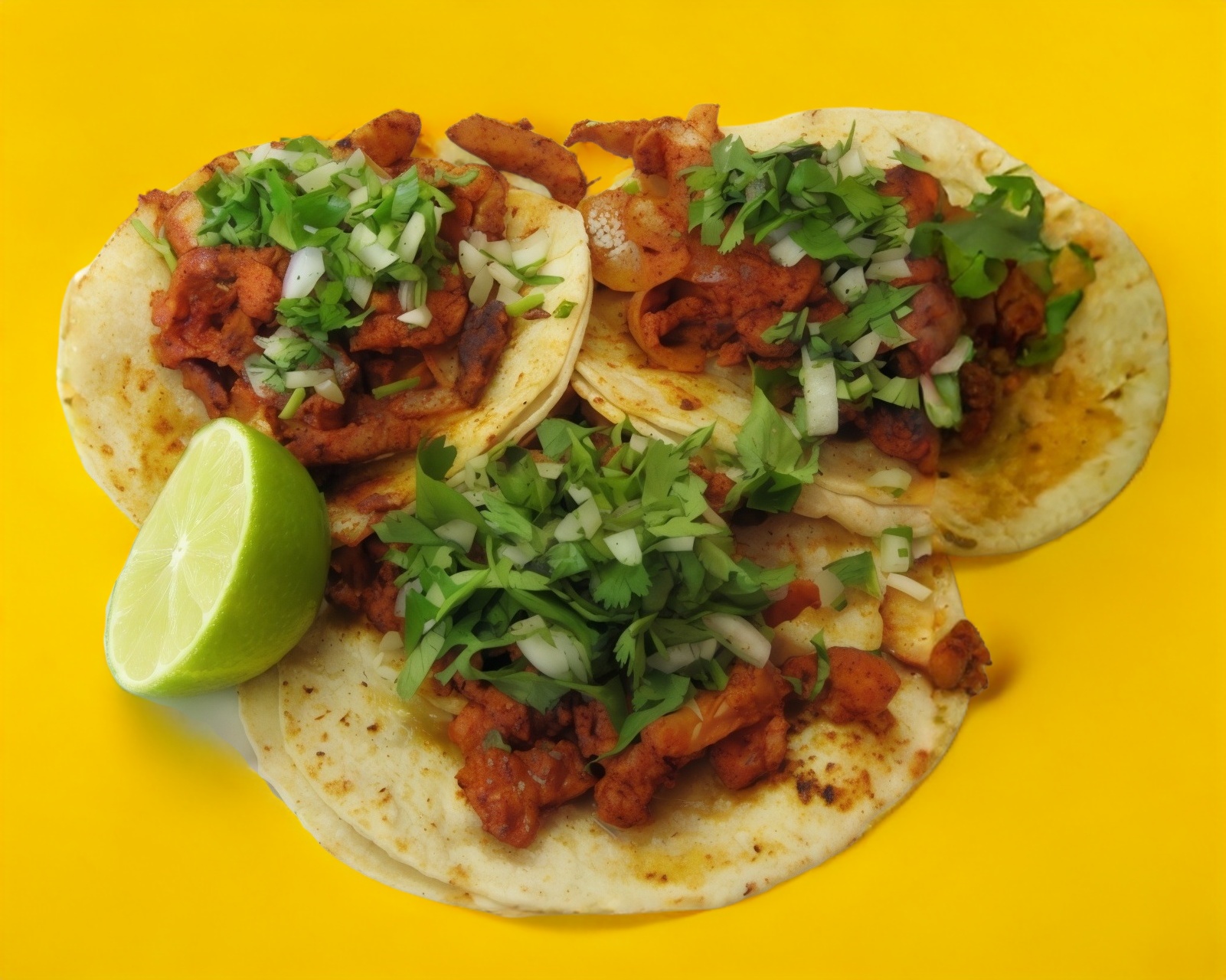Taco de tortilla de maíz relleno de barbacoa jugosa, acompañado de cebolla, cilantro y salsa al gusto.