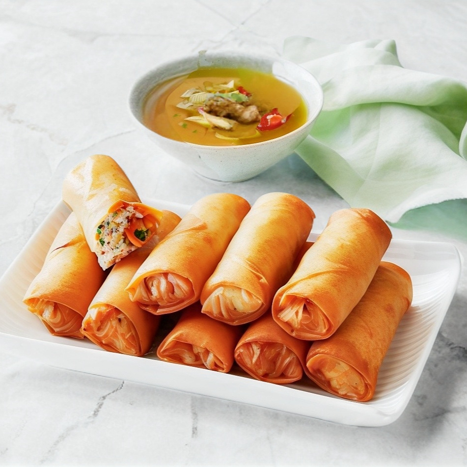 Rollo primavera. Vegetales: zanahoria, pimentón, lechuga y pepino.
