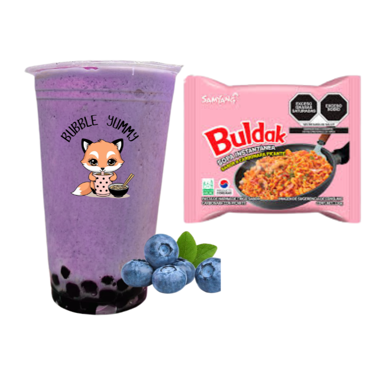 Tapioca Blueberry y Buldak Carbonara