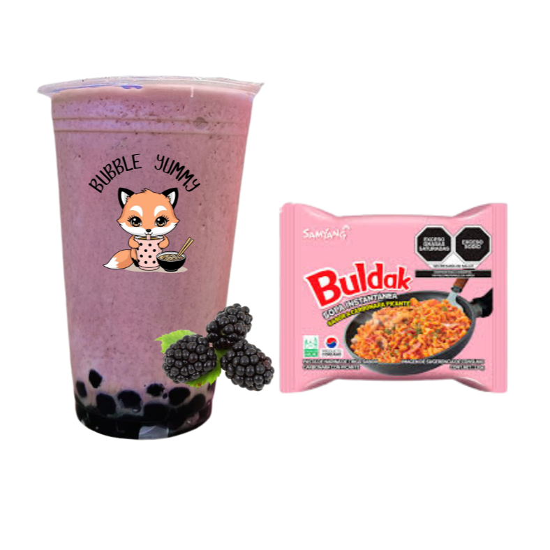 Tapioca Zarzamora y Buldak Carbonara