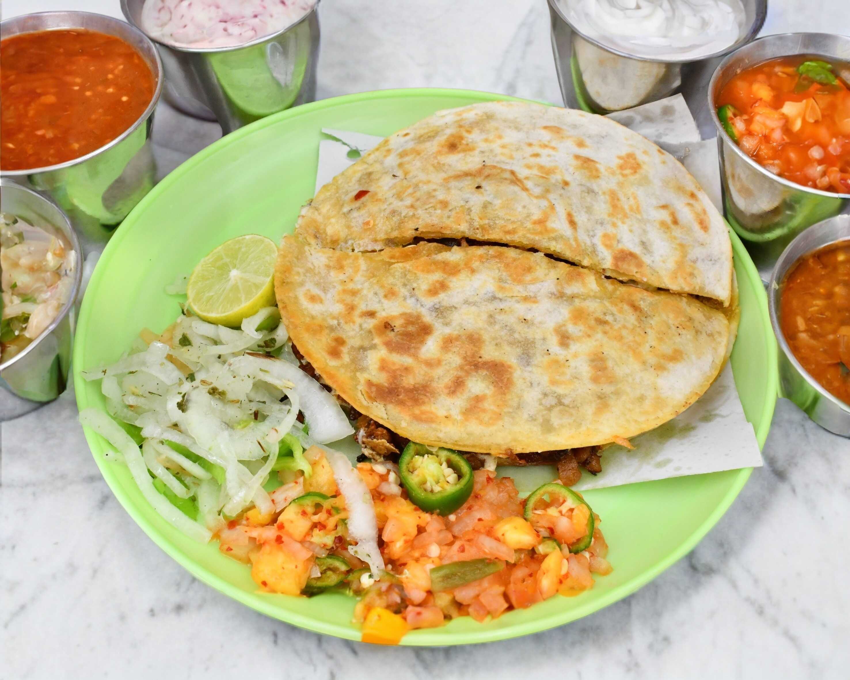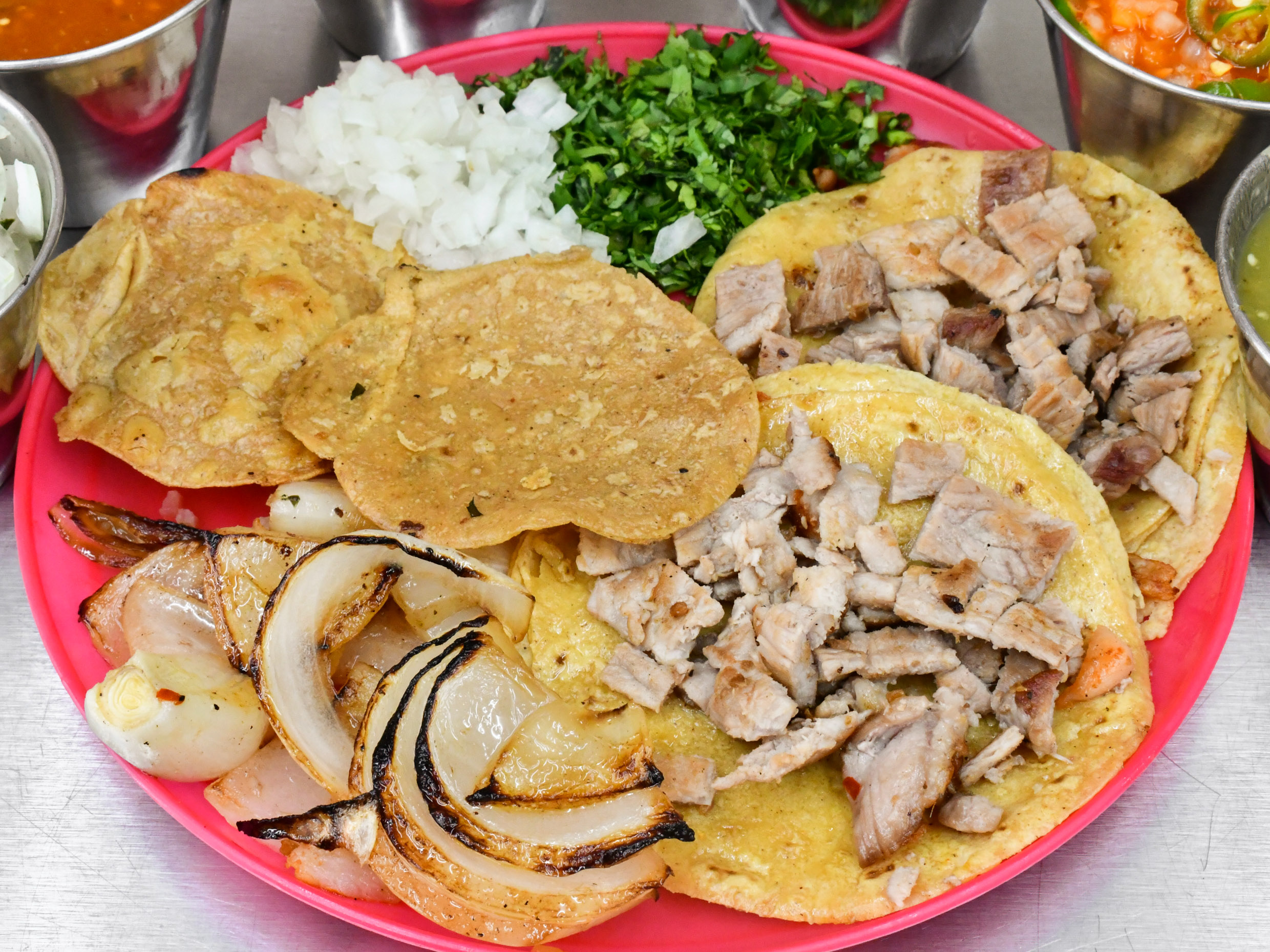 porción personal, el platillo incluye : orden de bistec carne de res 250 gramos aproximadamente, 15 tortillas de maíz ,salsas roja y verde