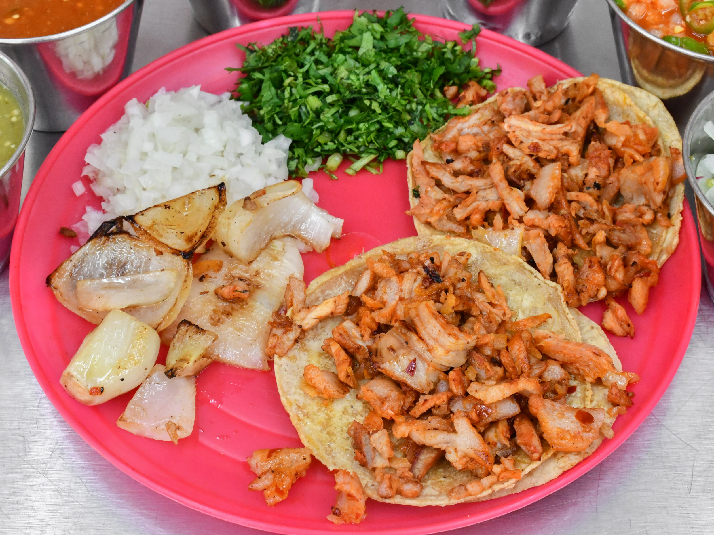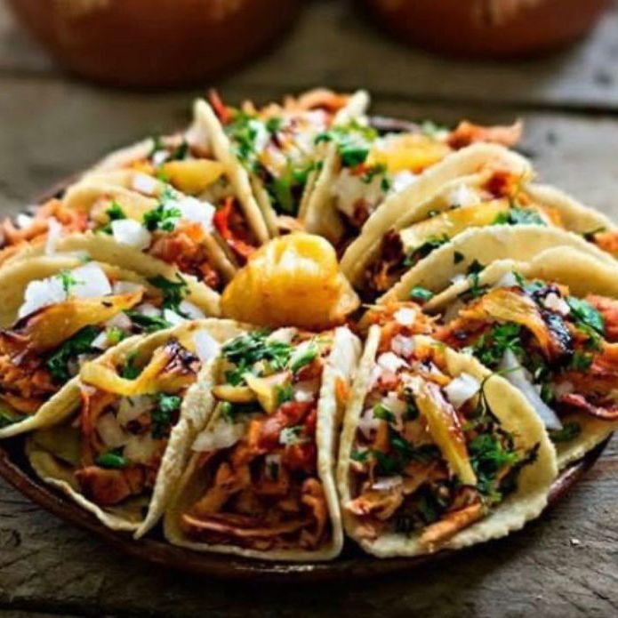 orden de pastor, 15 tortillas, salsas roja y verde, 200 gr carne al pastor, verduras, limones