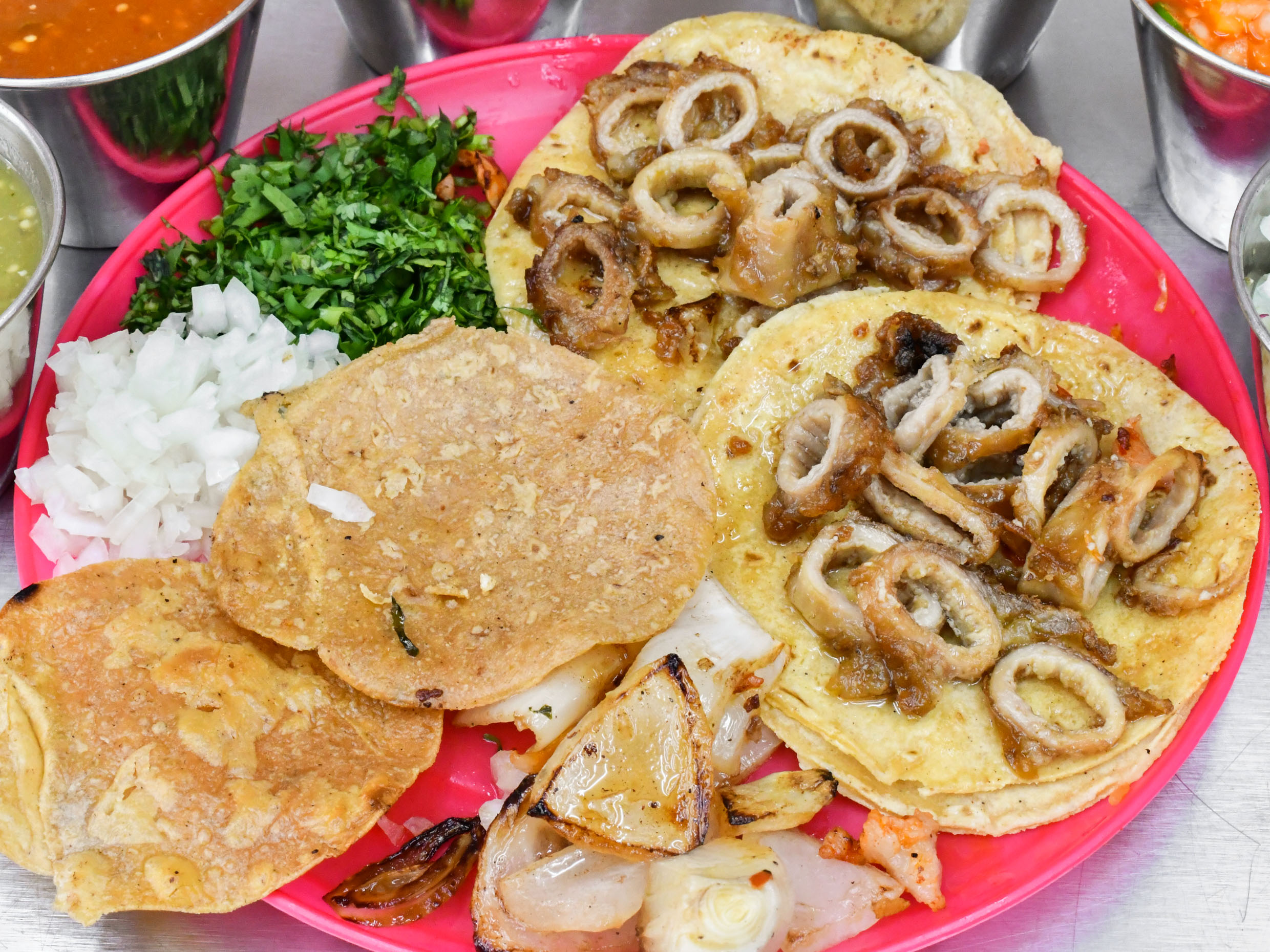 orden de tripa ,tortillas ,salsas