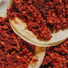 Tortilla de harina con carne de res picada,queso y hueso frito