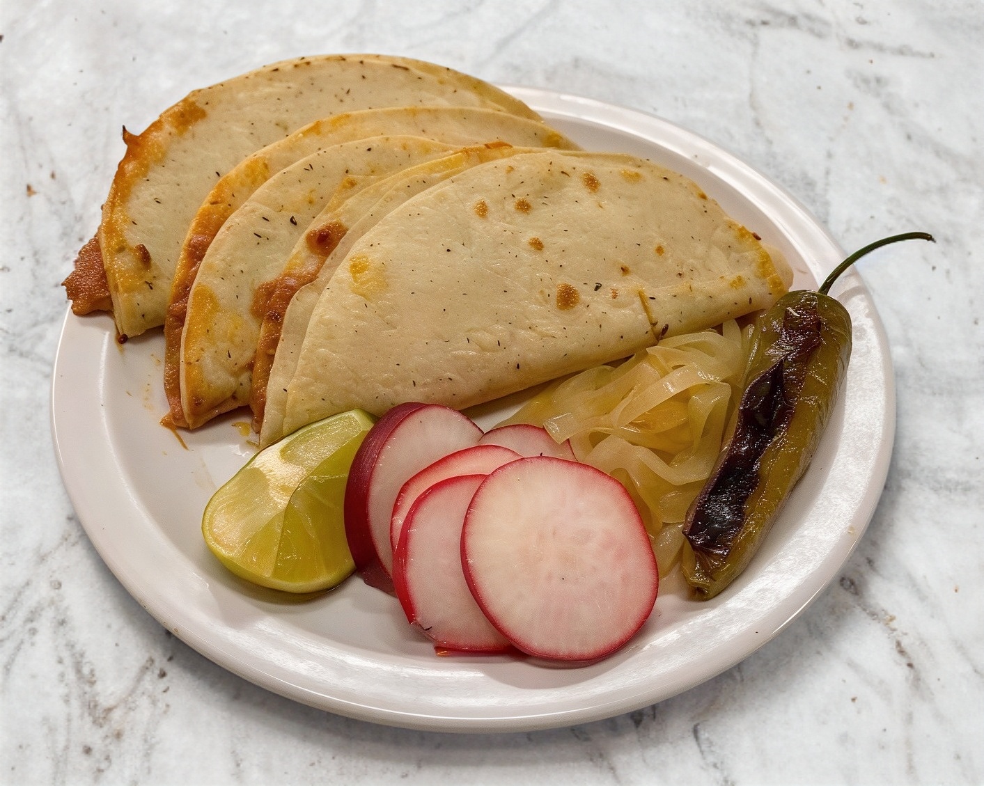 Tortilla grande de maíz (doble) con barbacoa especial preparada al día, acompañado de verduras y salsas de la casa.