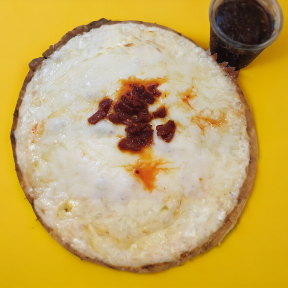 Chuleta, cebolla, pastor, morrón, tocino, piña, champiñones y queso.