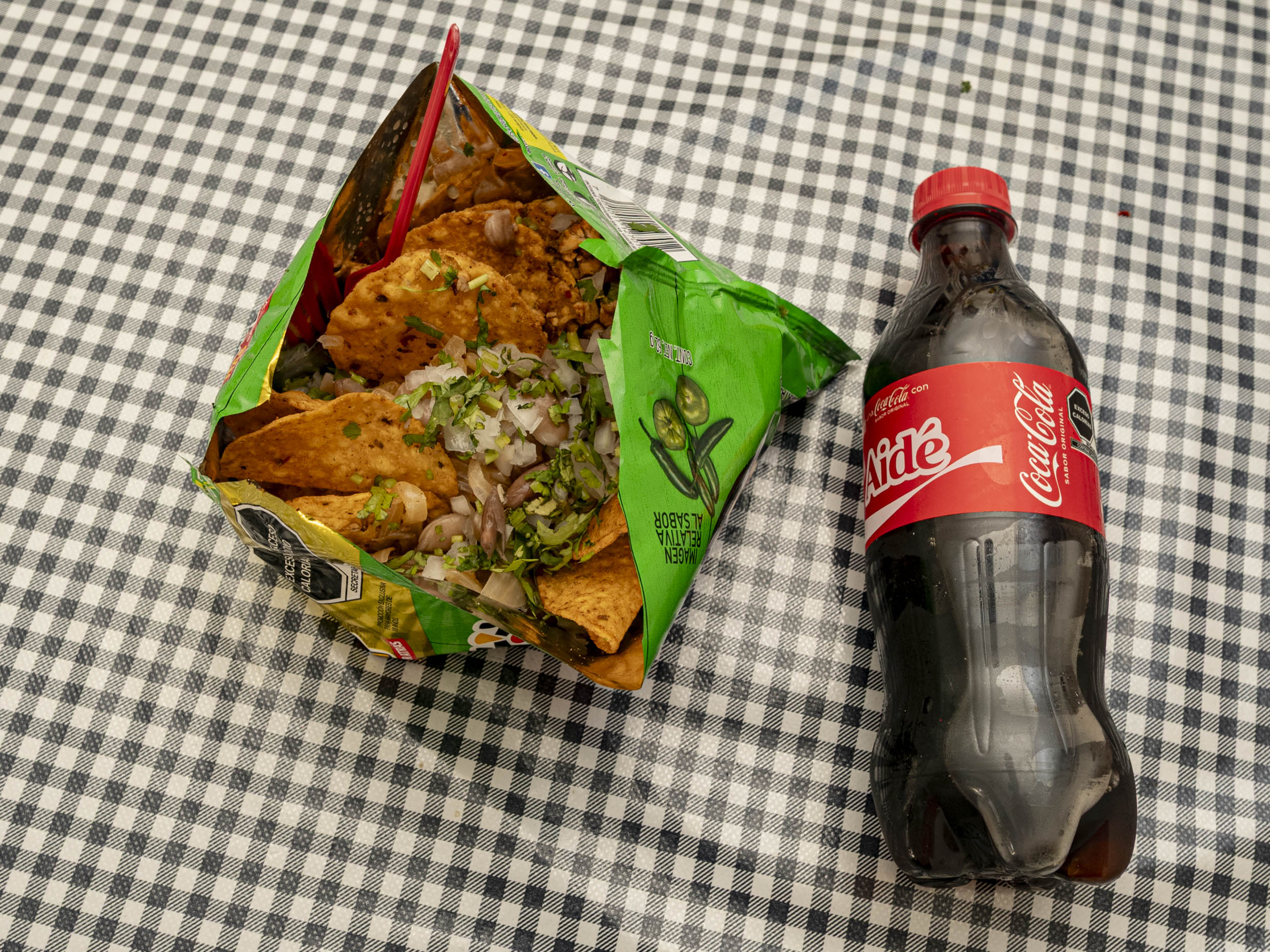 ✨ Este platillo incluye una Coca-Cola de 450 ml ✨ Tostitos con frijoles refritos, cebolla caramelizada, queso derretido, cilantro y cebolla fresca, donde podras tu Elegir tu de carne.