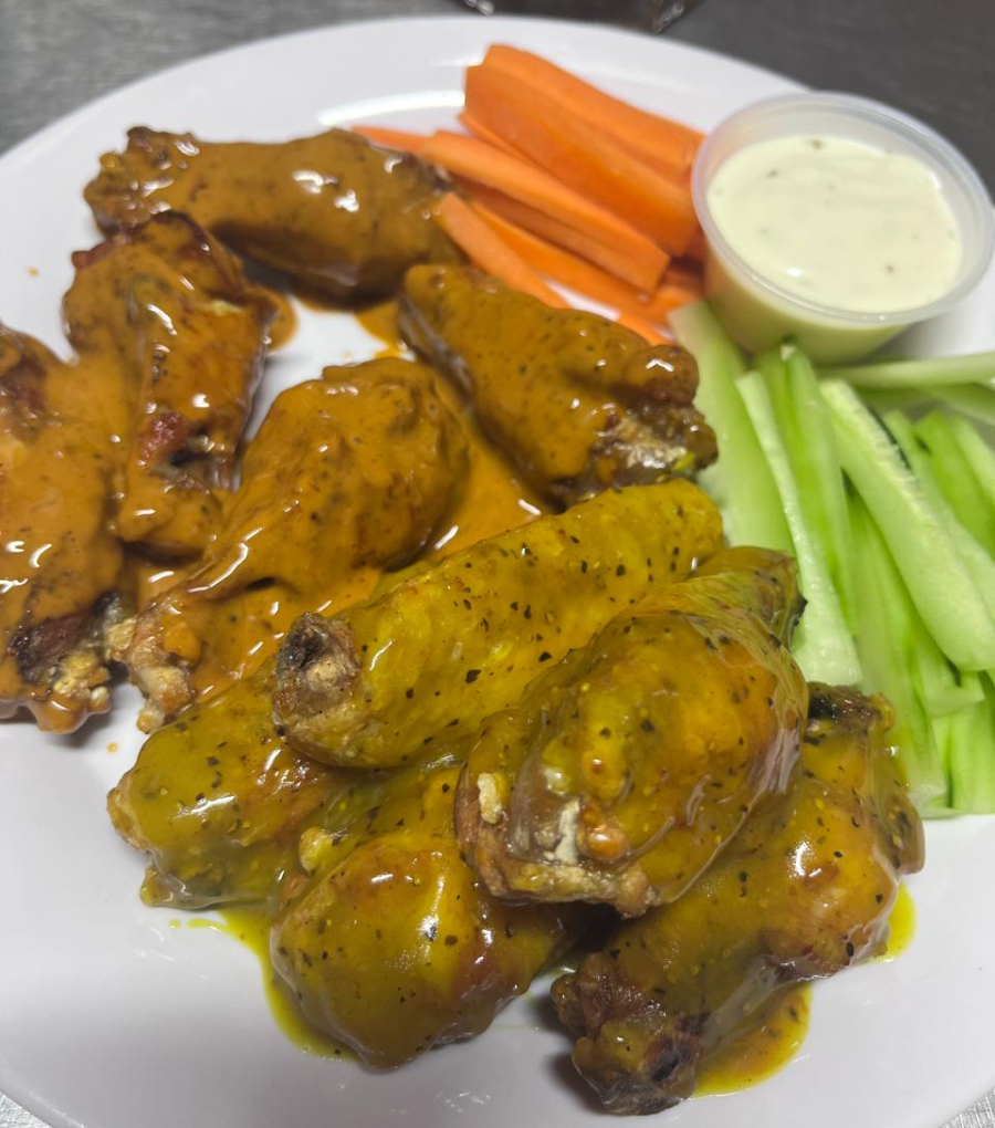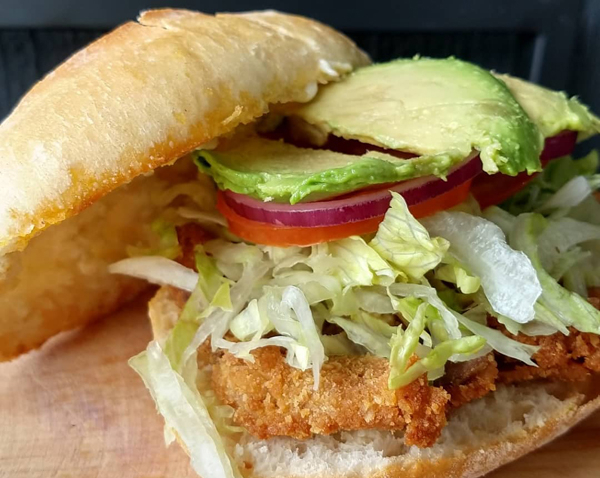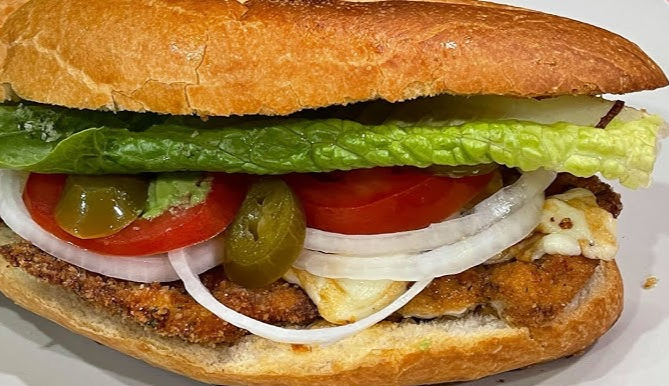 Pollo empanizado, queso, salsa de tu elección y verdura aparte.