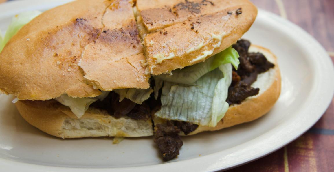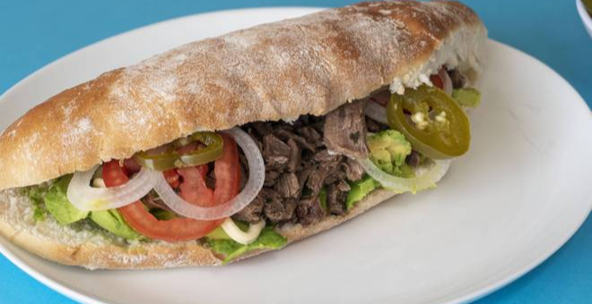 Elaborado con bolillo, arrachera marinada y verdura aparte.