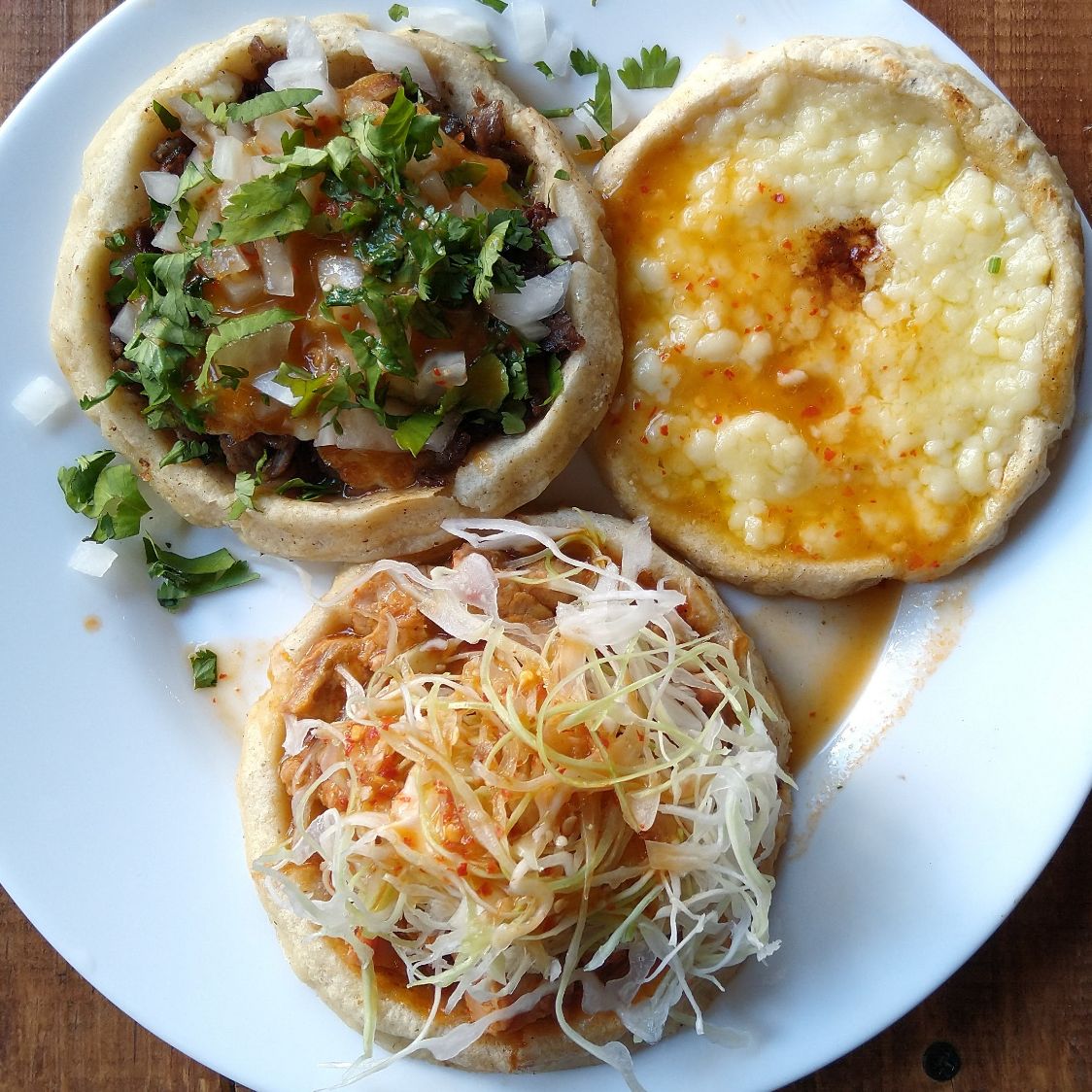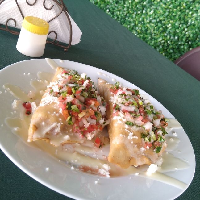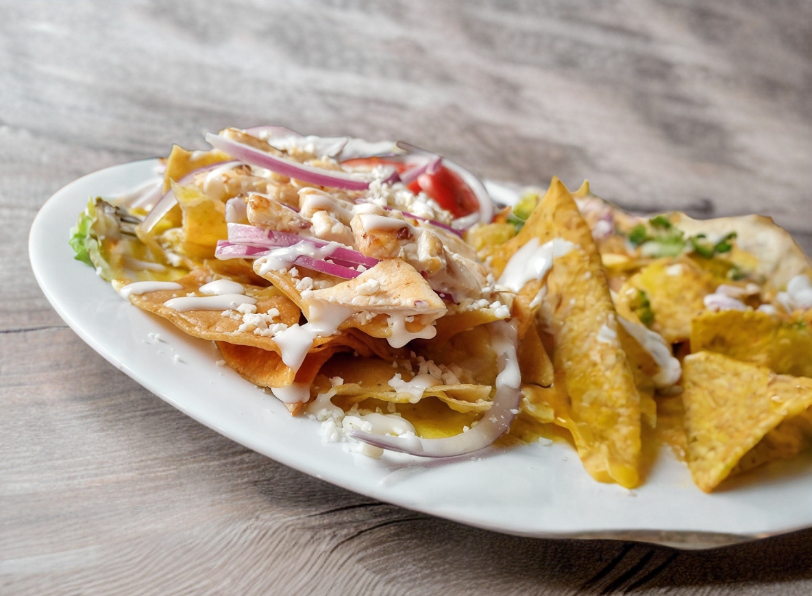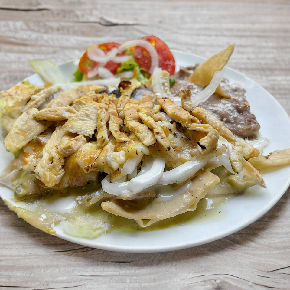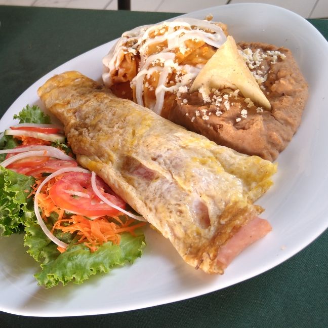 Platillo personal ,Acompañados de vegetales ,frijoles fritos, queso , crema y cebolla, blanca.