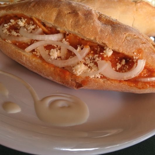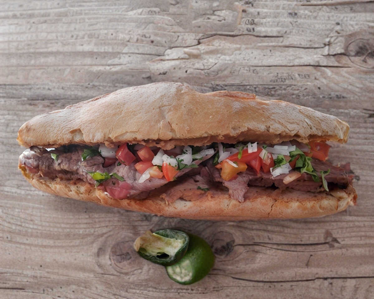 Lonche de Bistec en Salsa Roja