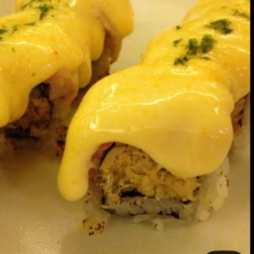 Rollo relleno de pepino, philadlphia, agucate, camaron, forrado con una cama de philadelphia, empanizado y con queso gouda fundido