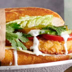 Milanesa de pollo, lechuga, jitomate, cebolla, jalapeño y papas