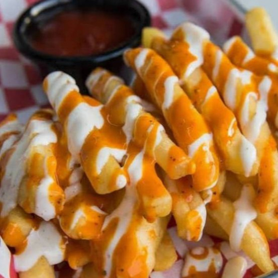 Papas francesas bañadas en una combinación de salsa buffalo ranch.