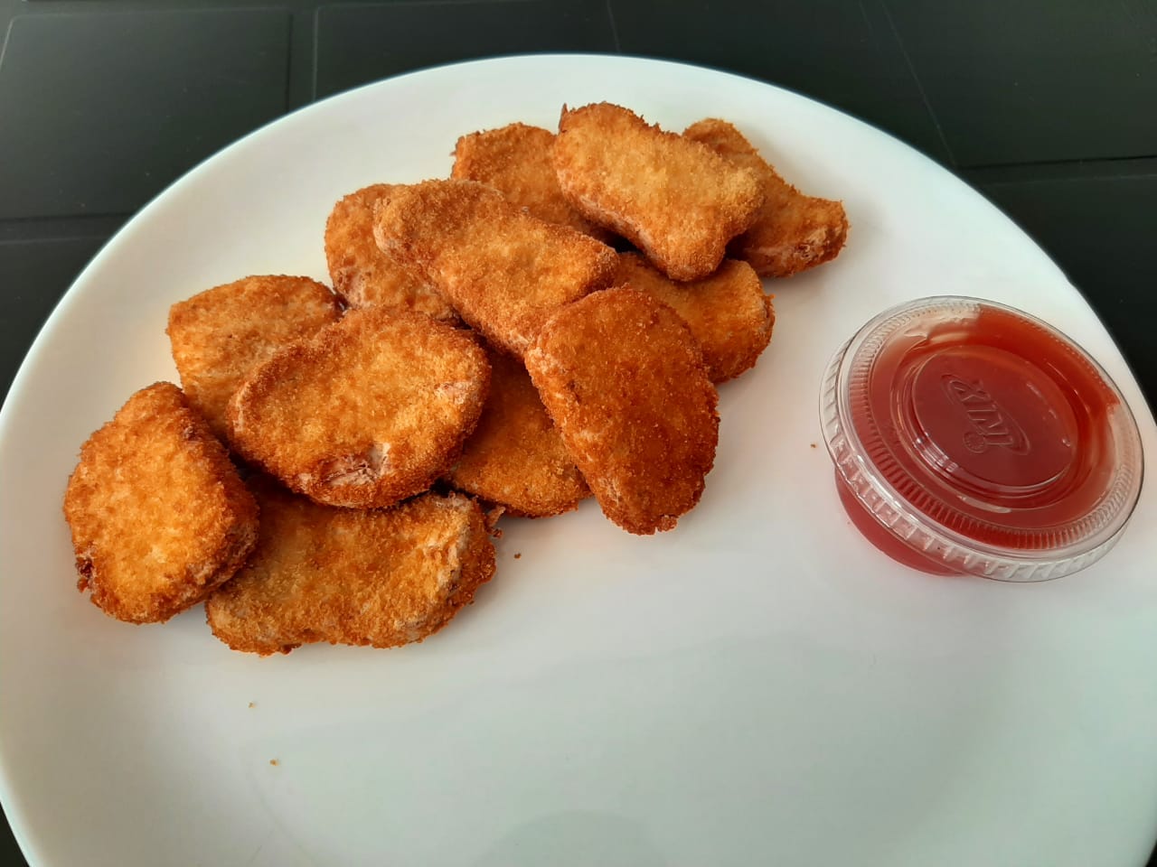 Orden de 30 palomitas de pollo bañadas en salsa BBQ.